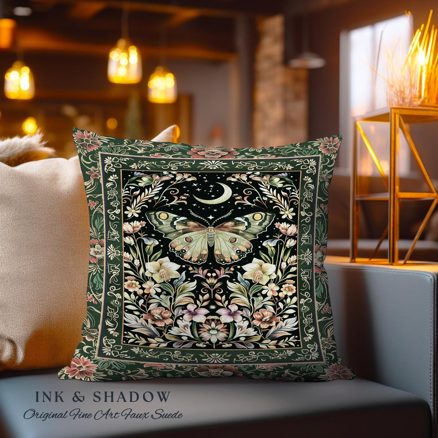 Boho Botanical Moth Woven Pillow Floral Grunge Fairycore Room Decor, Gothic Moon Moth Butterfly Forestcore Dark Cottagecore Tapestry Cushion