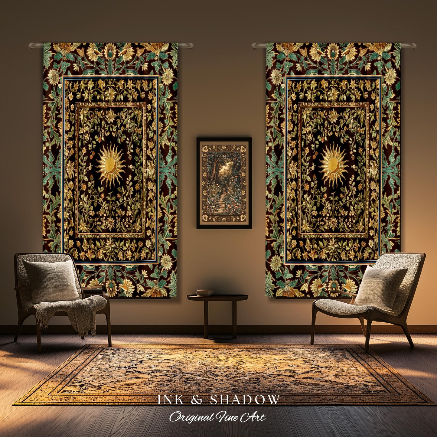 Boho Maximalist Sun Curtains | Witchy Mystic Theme Blackout Drapes Whimsical Celestial Tarot Aesthetic Astrology Inspired Spiritual Witchy