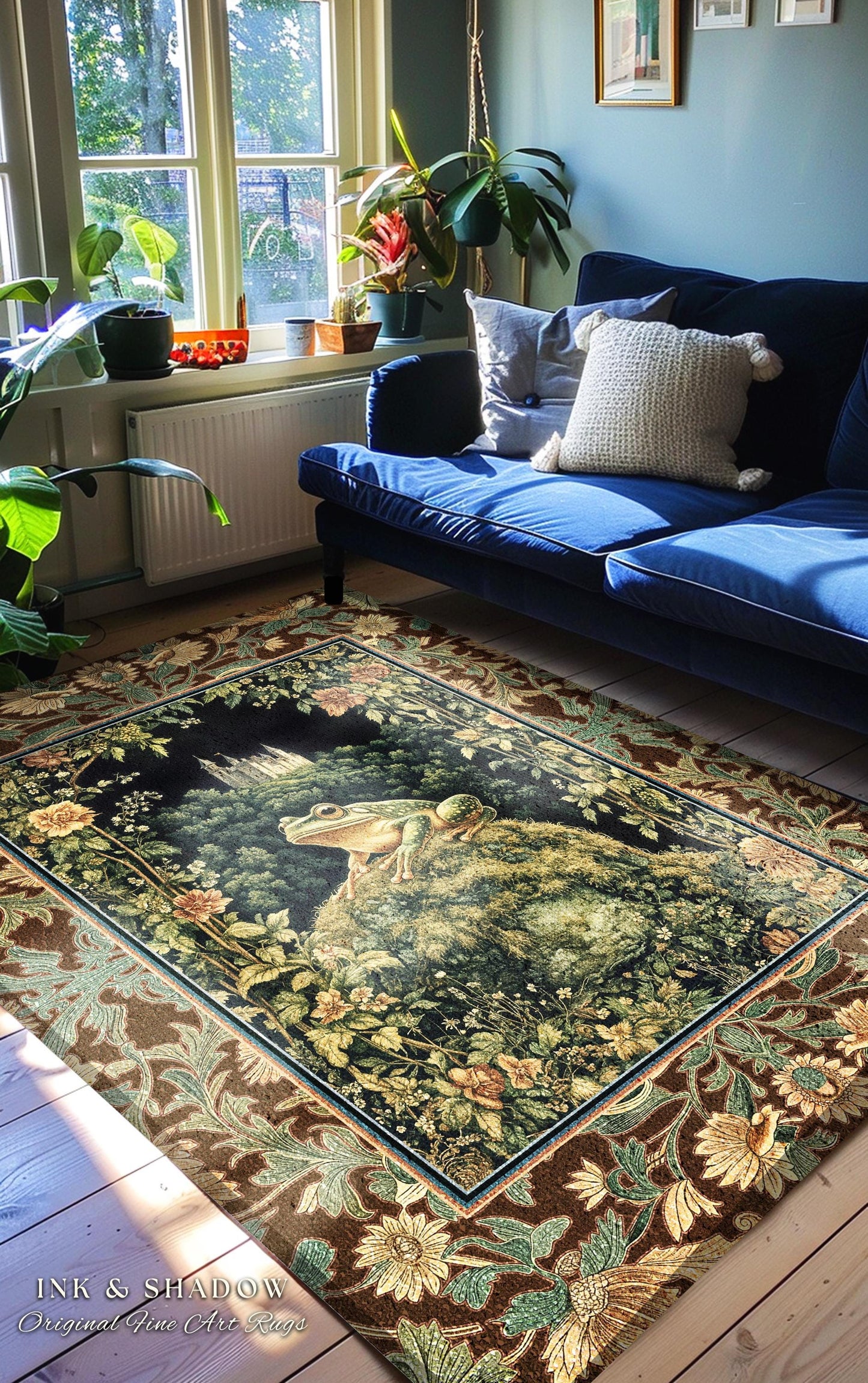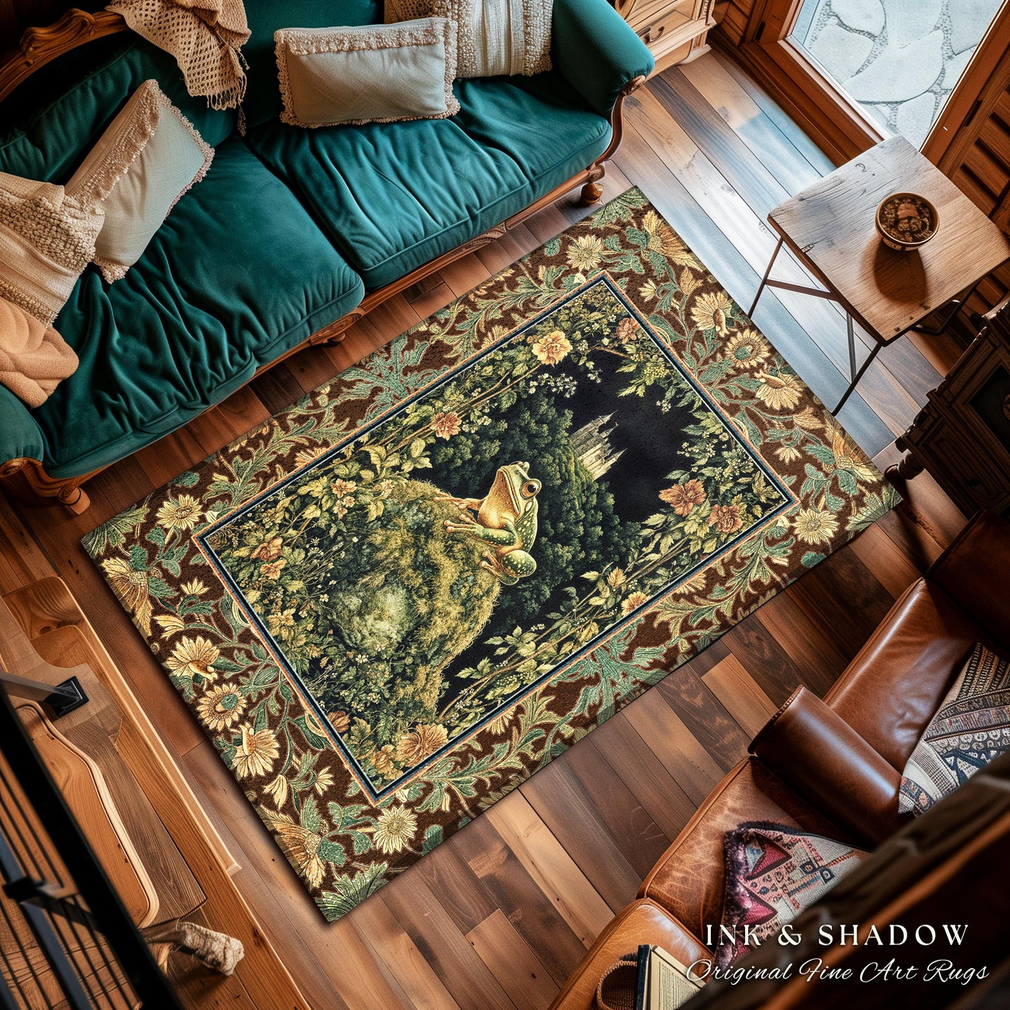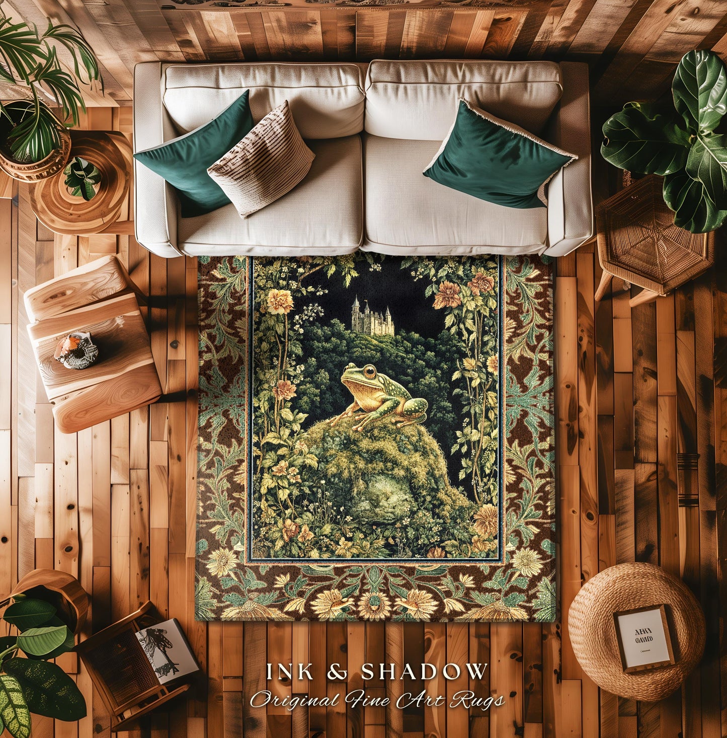 Castlecore Landscape Botanical Rug | Ethereal Fairytale Gothic Aesthetic Frog & Toad Accent Rug Cottagecore Living Room Floral Earthy Colors