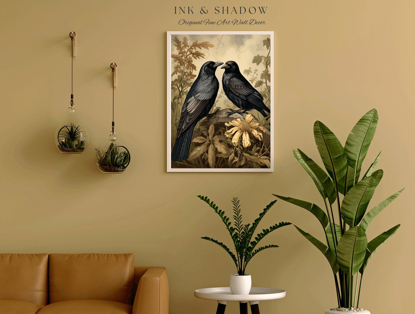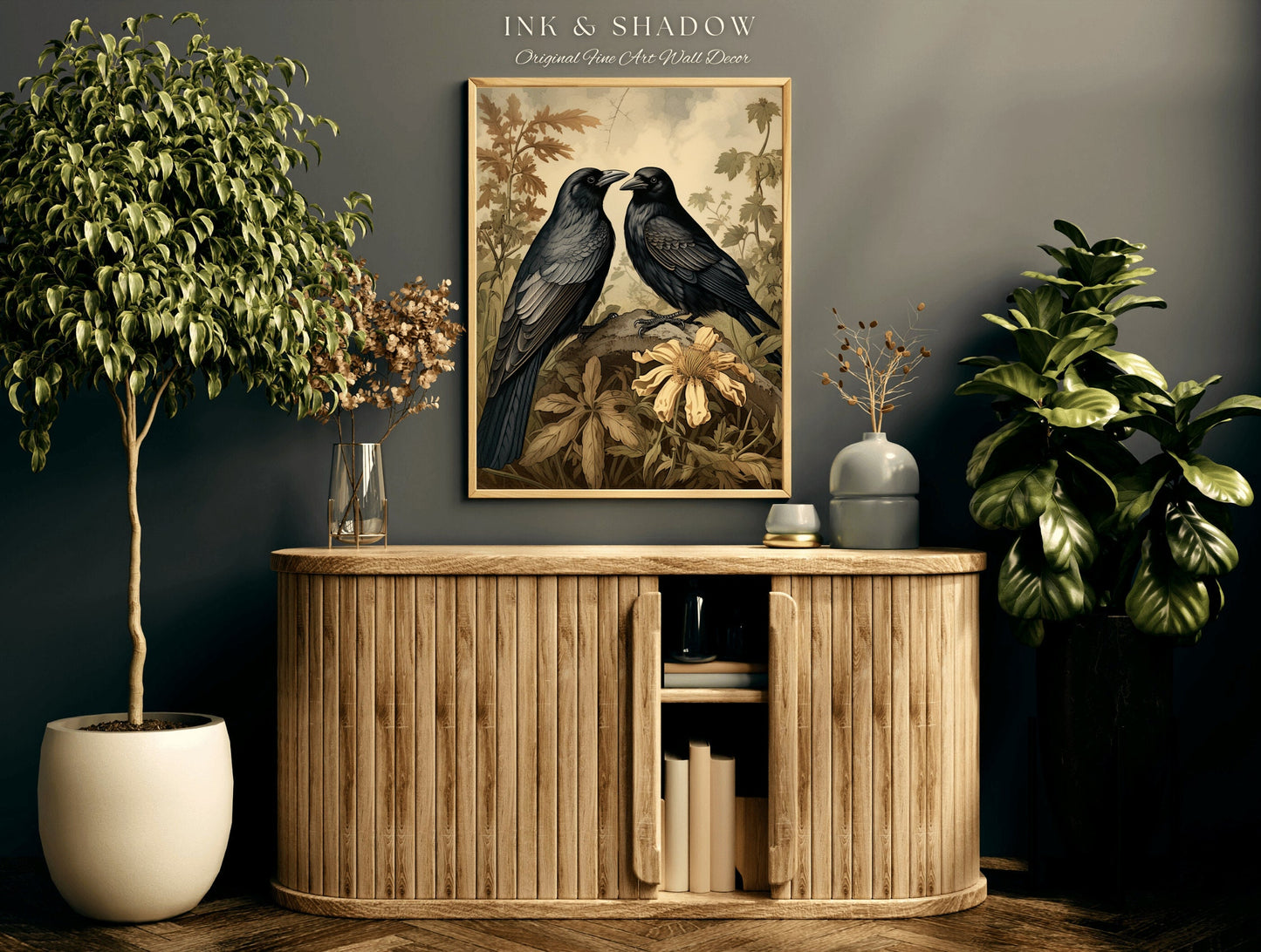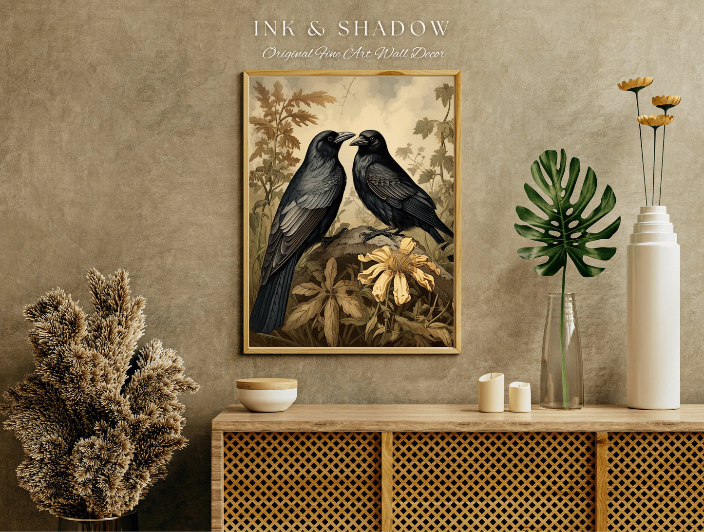 Crow Art Poster Print | Gothic Room Decor Crowcore Decor Dark Academia Poster Print Wall Art Printable | Macabre Room Decor Vintage Print |