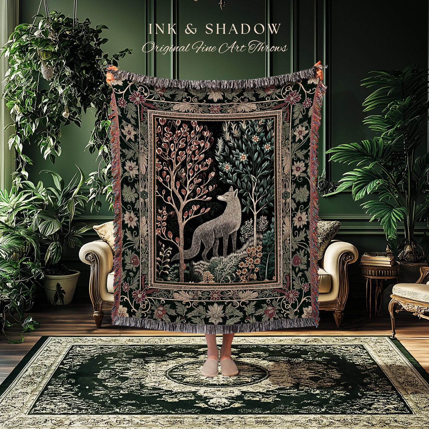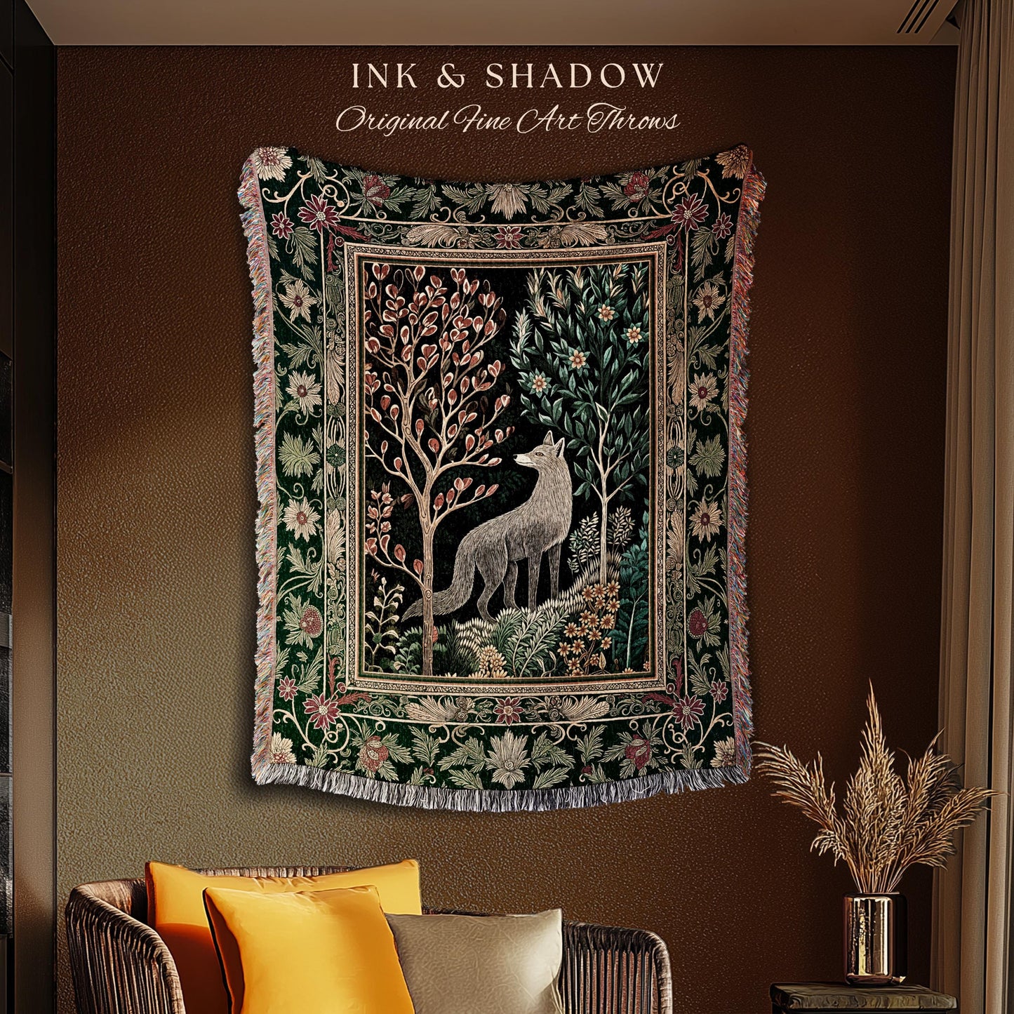 Danish Folk Art Forest Woodland Throw | Cozy Interiors Bohemian Elegance Scandinavian Aesthetic Bohemian Woven Tapestry Magical Fairytale |