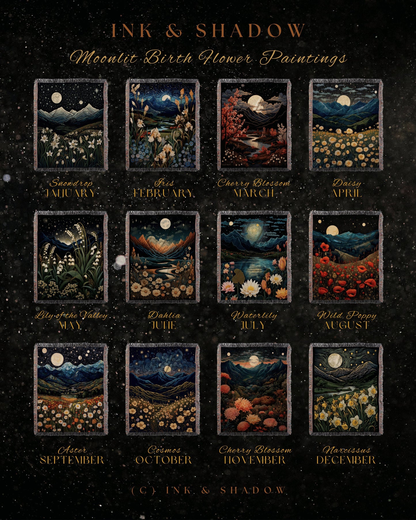 Welcome to Ink & Shadow, where artistry and mystique converge to create a truly enchanting shopping experience. Explore our curated collection that embraces the darker side of beauty, featuring a tapestry of artistry, unconventional curiosities, and hauntingly exquisite treasures. Specializing in bespoke nostalgia, Ink & Shadow blends timeless elegance with whimsical charm to offer distinctive fine art, refined home decor, chic accessories, and sentimental gifts. From luxurious throw blankets and intricately designed rugs to woven wall tapestries, museum-grade printed wall hangings, decorative pillows, and stylish totes, each piece is thoughtfully designed and made to order, ensuring it becomes a cherished addition to your home or an unforgettable gift for a loved one.