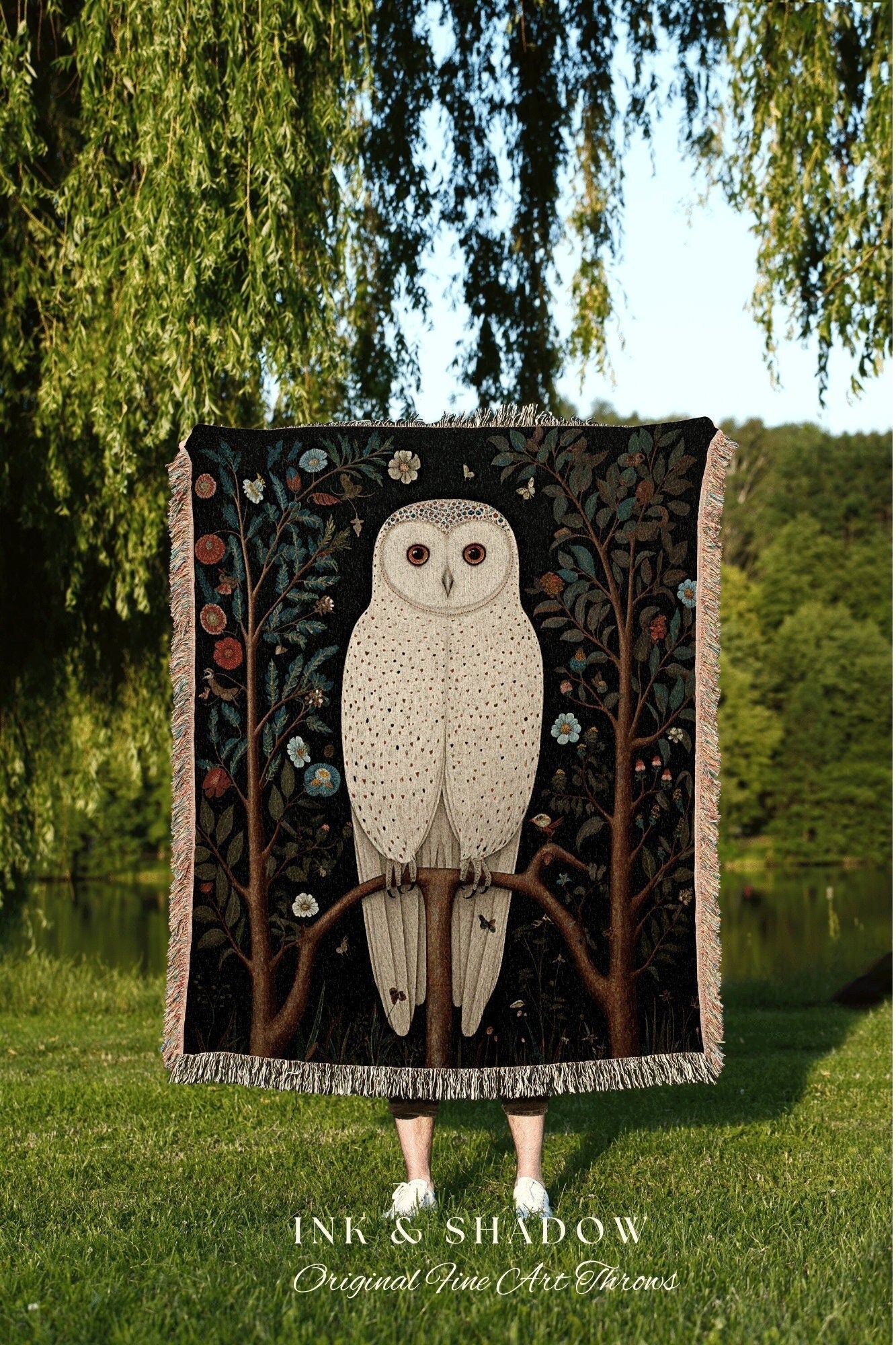 Eclectic Forest Owl Tapestry | Woven Tapestry Witchy Decor Cottagecore Art Crowcore Aesthetic Room Decor Magical Owl Tapestry Crow Core Art
