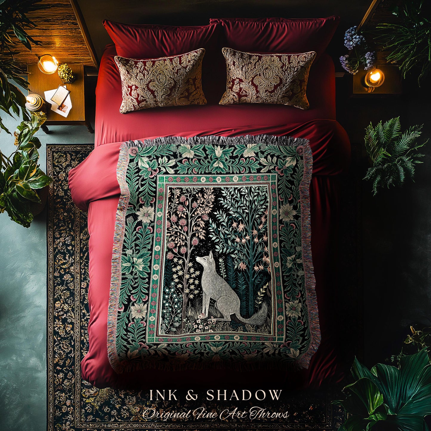 Enchanted Forest Whimsical Tapestry | Fairytale Woodland Cottagecore Aesthetic Bohemian Decor Cozy Scandinavian Mystical Woven Throw Blanket