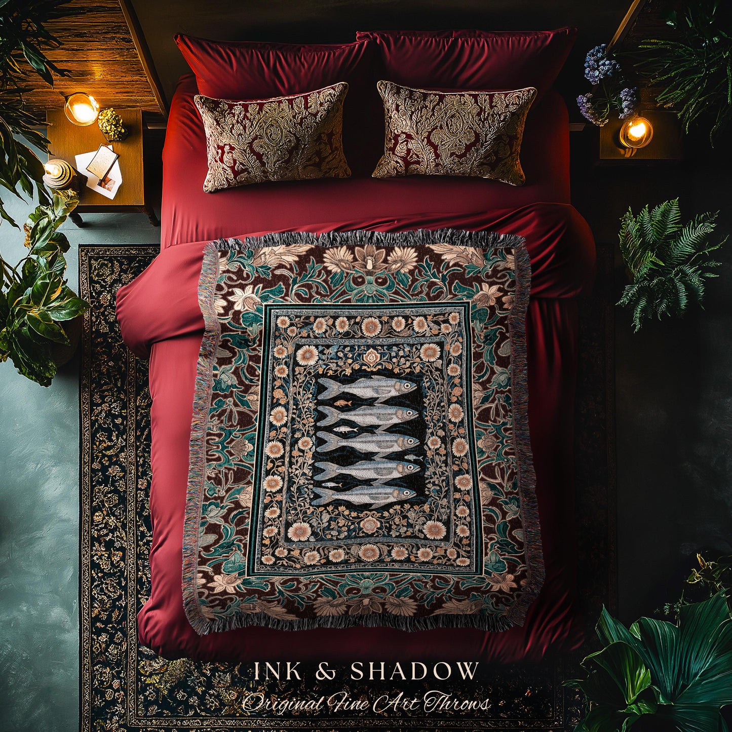 Ethereal Medieval Maritime Fish Tapestry Throw Antique Sardine Art Coastal Cottagecore | Nautical Botanical Ocean Decor Vintage Sea Blanket