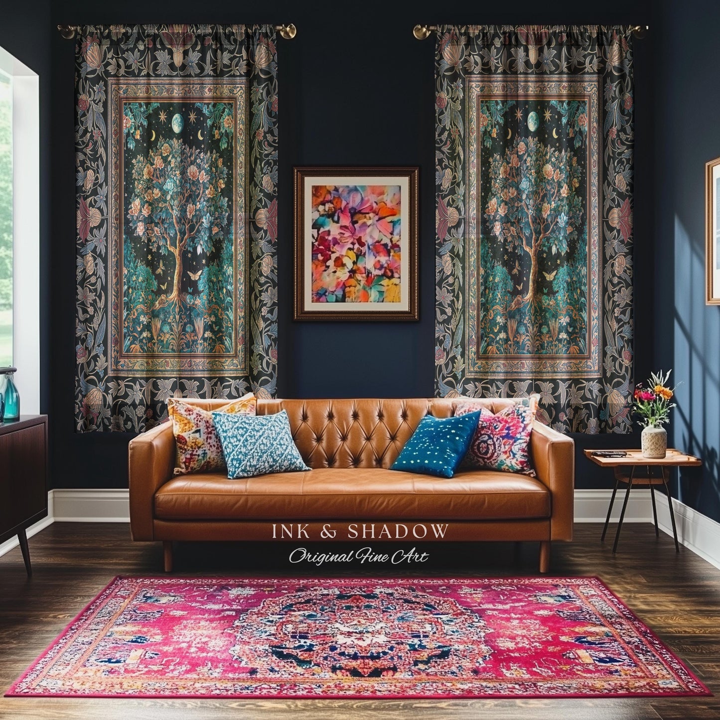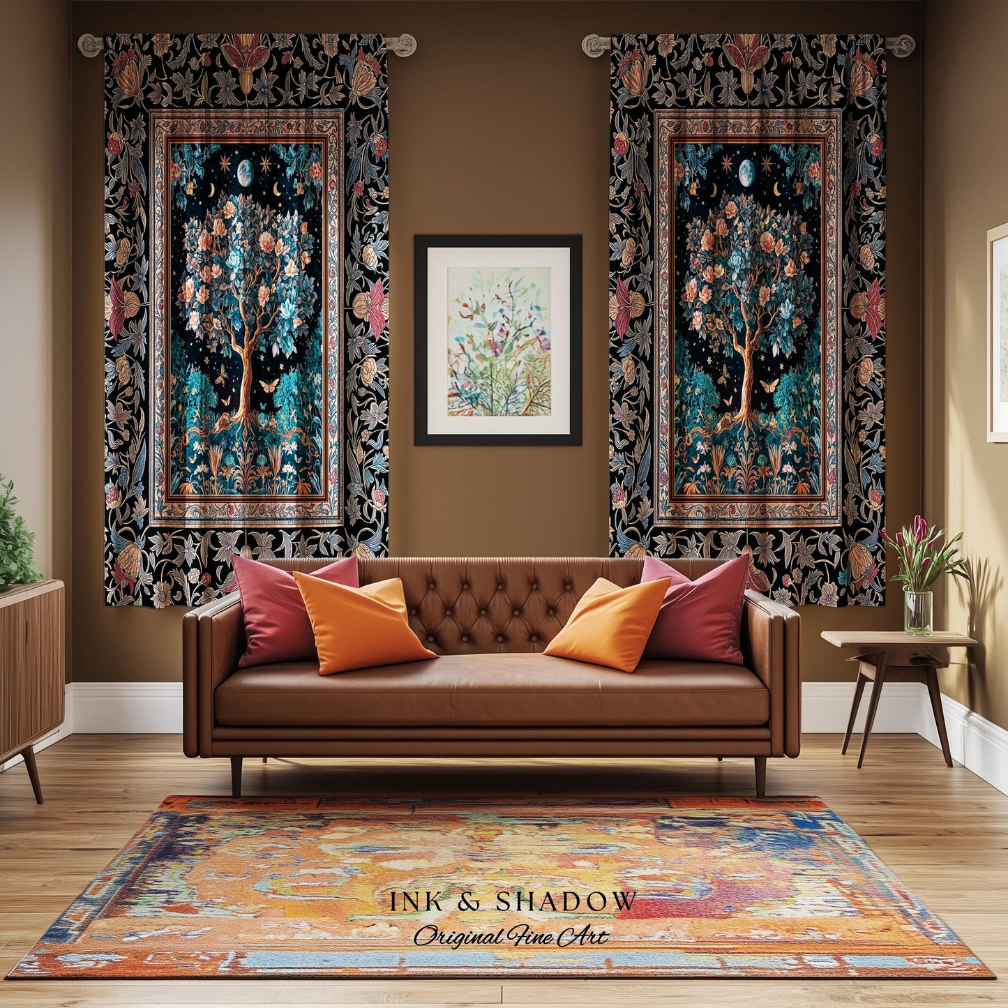 Enchanted Moonlit Tree of Life Curtains | Romantic Forest Aesthetic Home Decor Vintage Boho Style Housewarming Gift Cozy Bedroom Drapes |