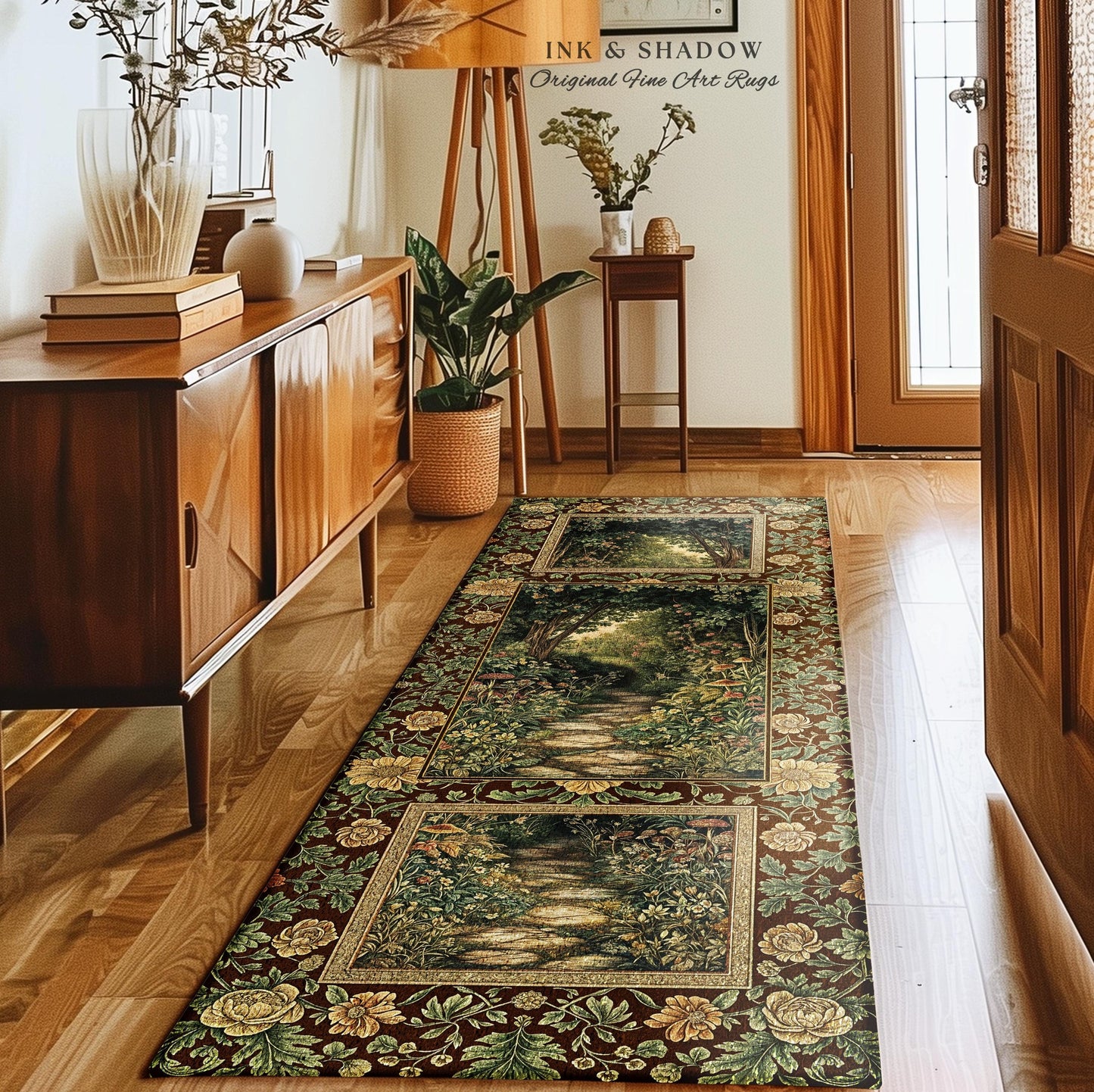 Fairy Ethereal Forest Entryway Rug | Mystic Dark Academia Folklore Inspired Fairycore Aesthetic Runner Rug Magical Dark Medieval Botanical