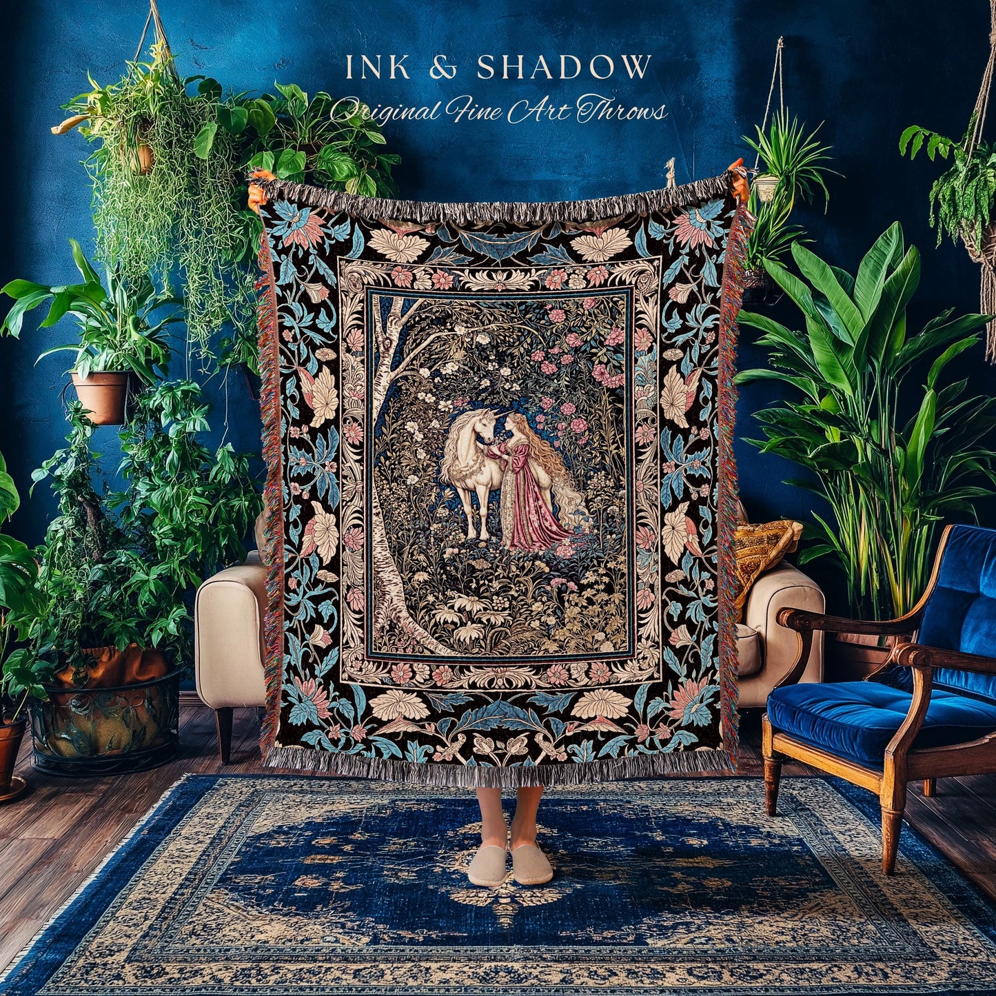 Fairy Forest Floral Maximalist Blanket | Pastel Coquette Light Academia Bedroom Ethereal Forest Spirits Dreamy Fairytale Woven Wall Tapestry