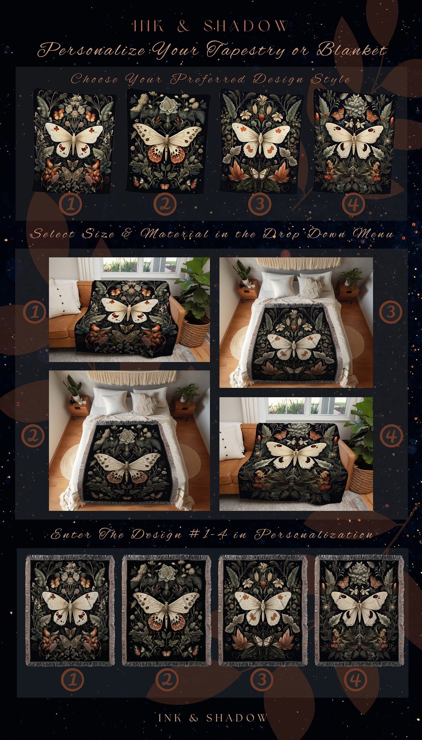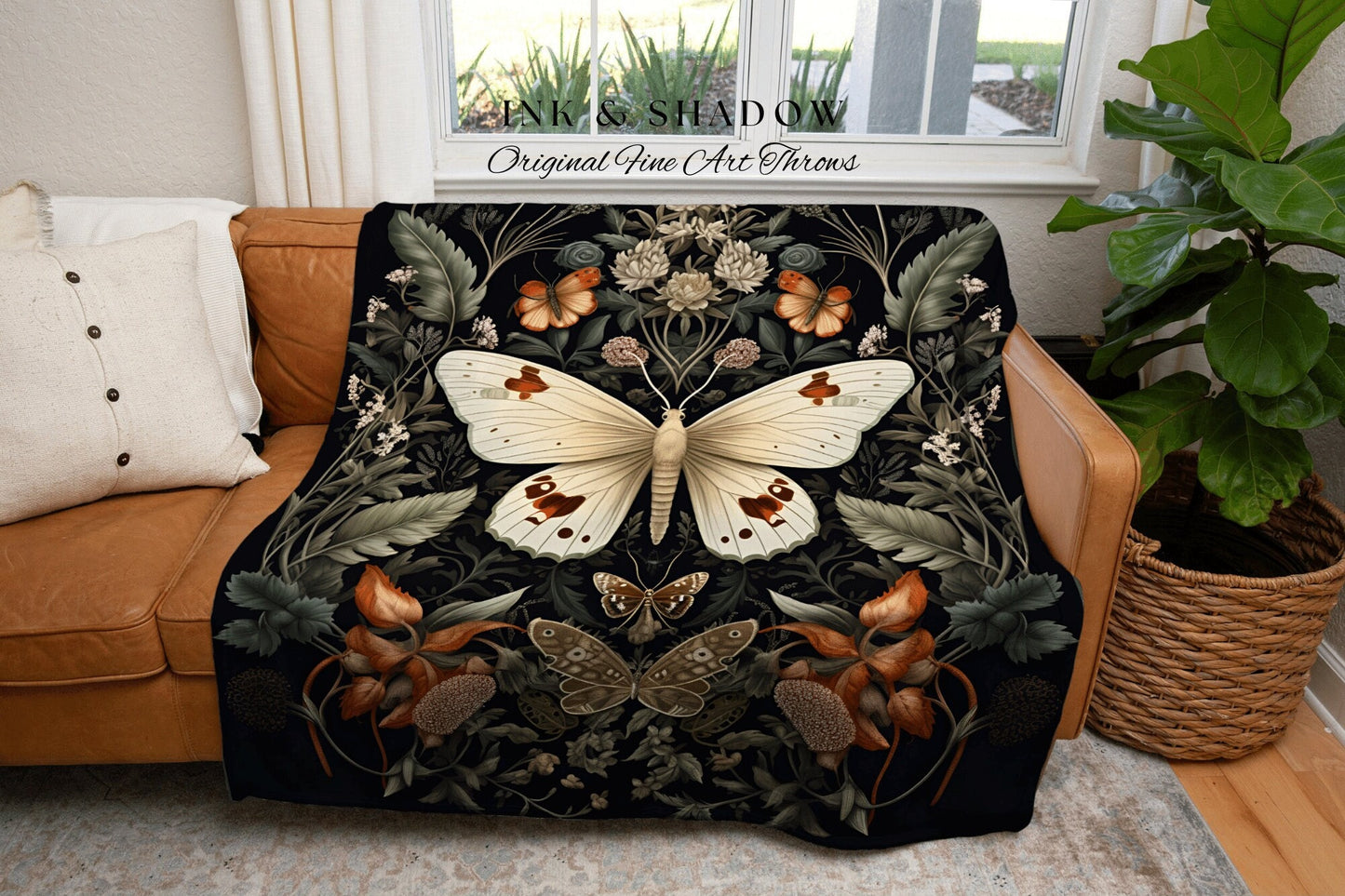 Fairy Grunge Moth Tapestry | Witchy Aesthetic Room Decor Gothic Art Crowcore Room Decor Dark Cottagecore Art Butterfly Moth Blanket Woven |