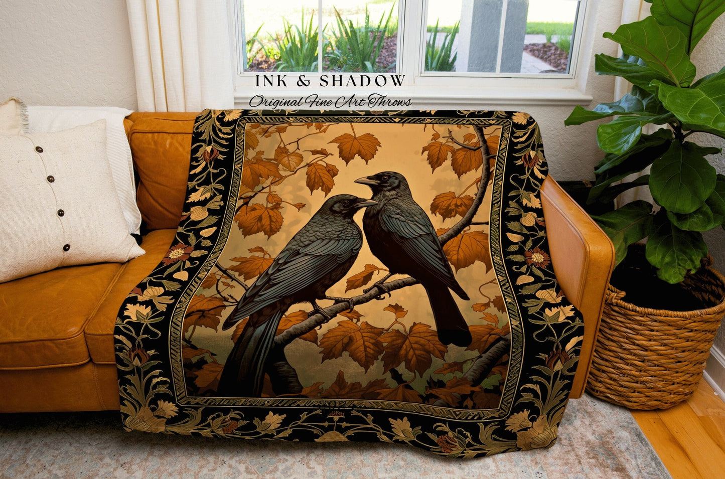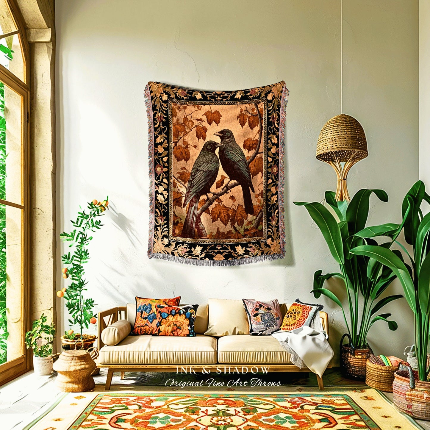 Fall Aesthetic Room Decor Dark Academia Tapestry Whimsigoth Gift Dark Cottagecore Tapestry Raven Home Decor Floral Macabre Home Decor Witchy