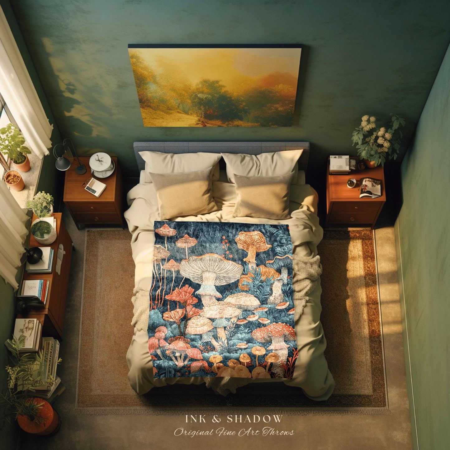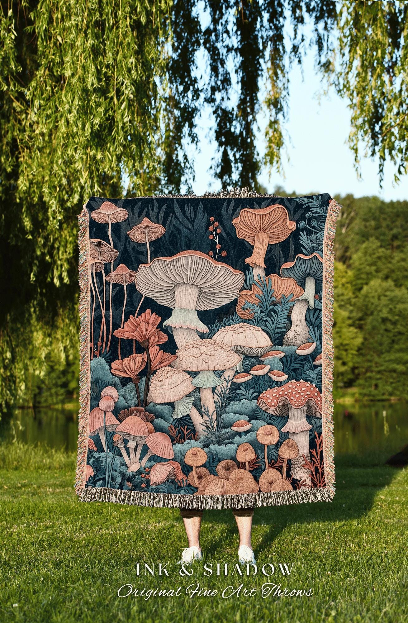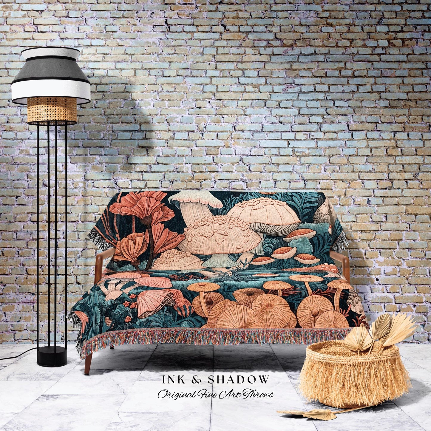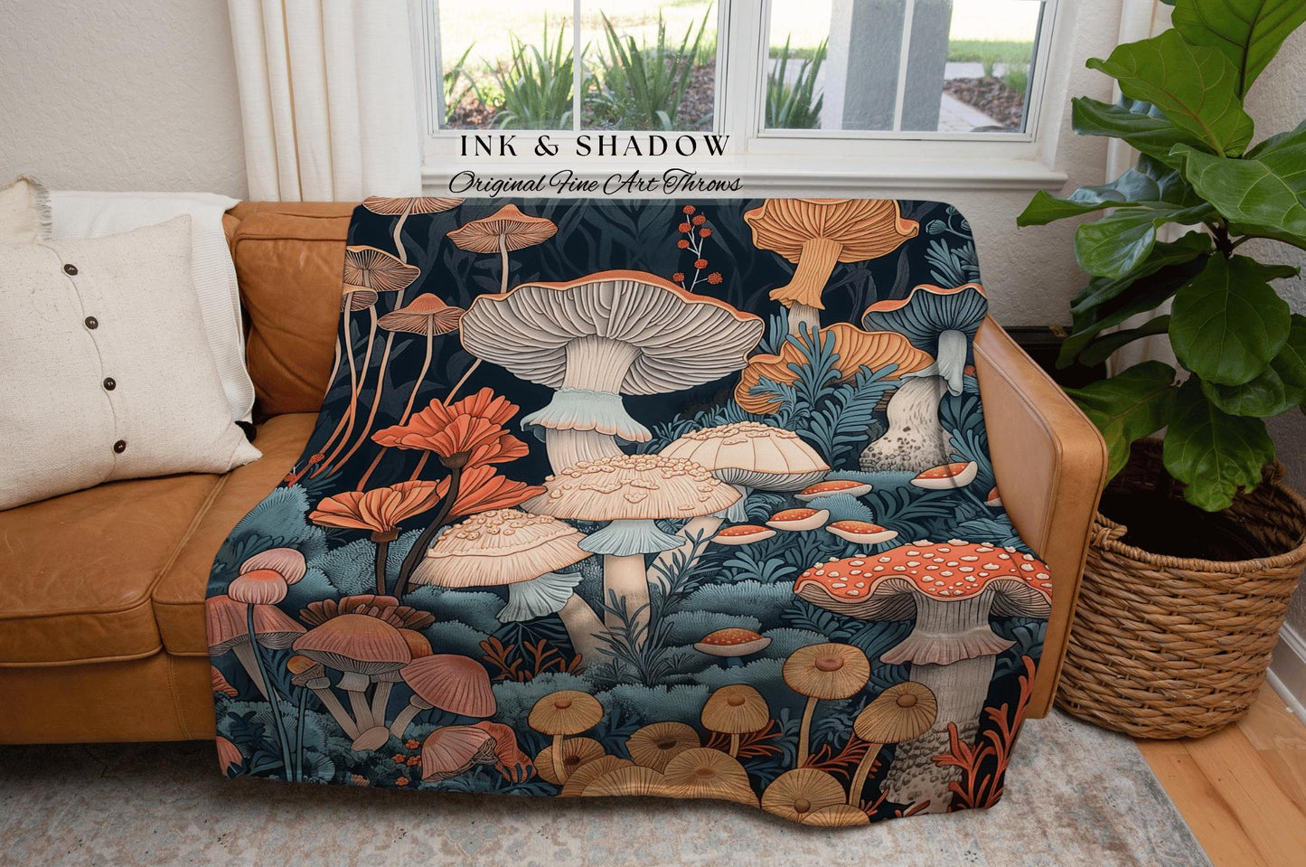 Floral Gothic Woven Blanket | Throw Gift for Mushroom Aesthetic Whimsical Witchy Decor Reading Nook Magical Cottagecore Toadstool Eclectic |