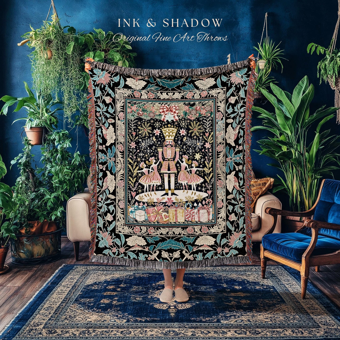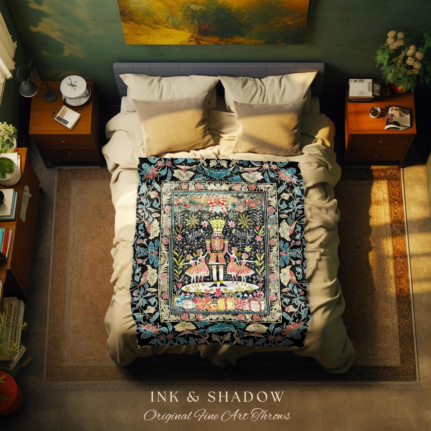 Folklore Aesthetic Nutcracker Throw Blanket | Nordic Woven Tapestry Holiday Gift Christmas Cozy Decor Boho Bedroom Accent Scandinavian Style