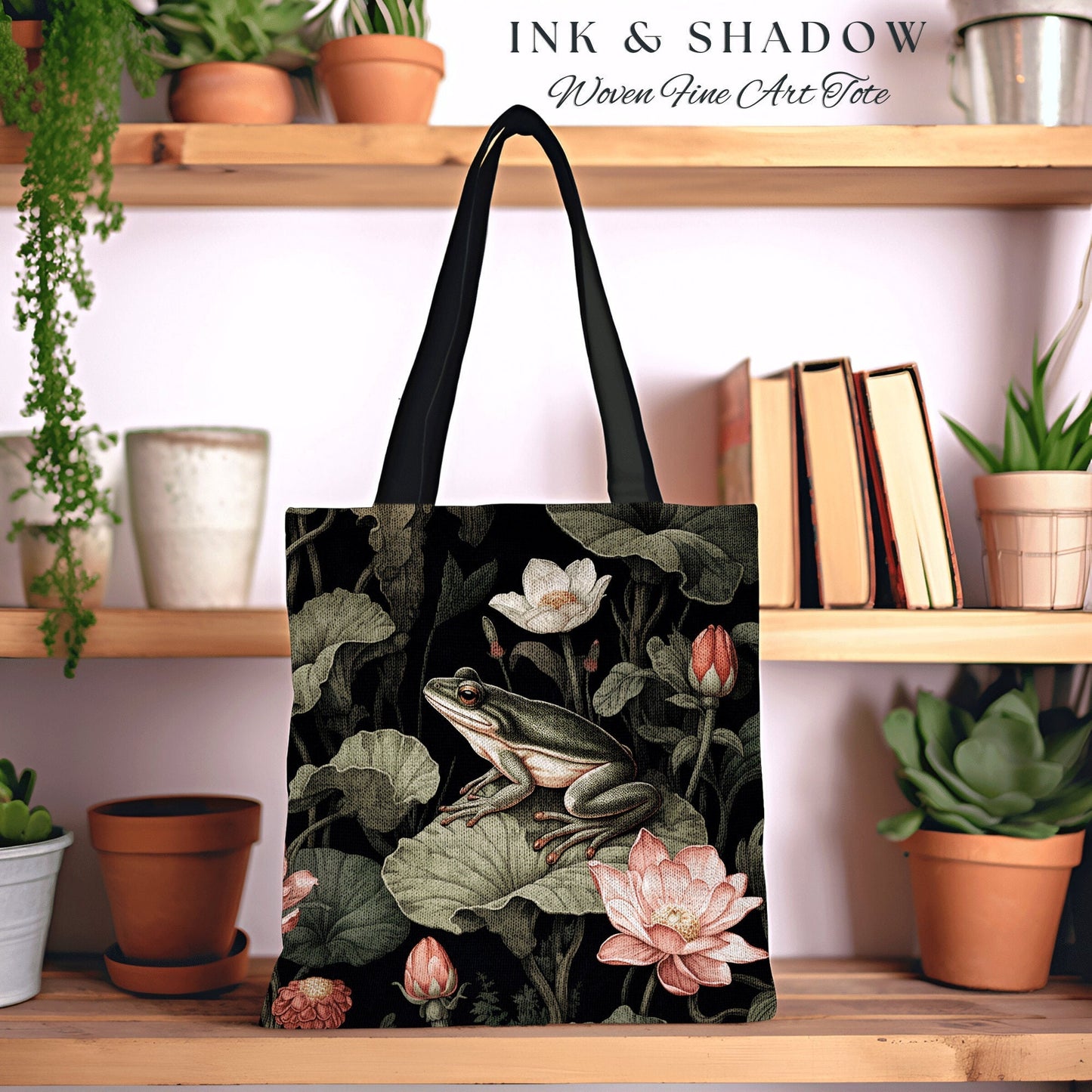 Forestcore Frog Tote Woven | William Morris Inspired Tote Bag Aesthetic Mystical Tapestry Bag Woven Victorian Fairycore Boho Frog Satchel |