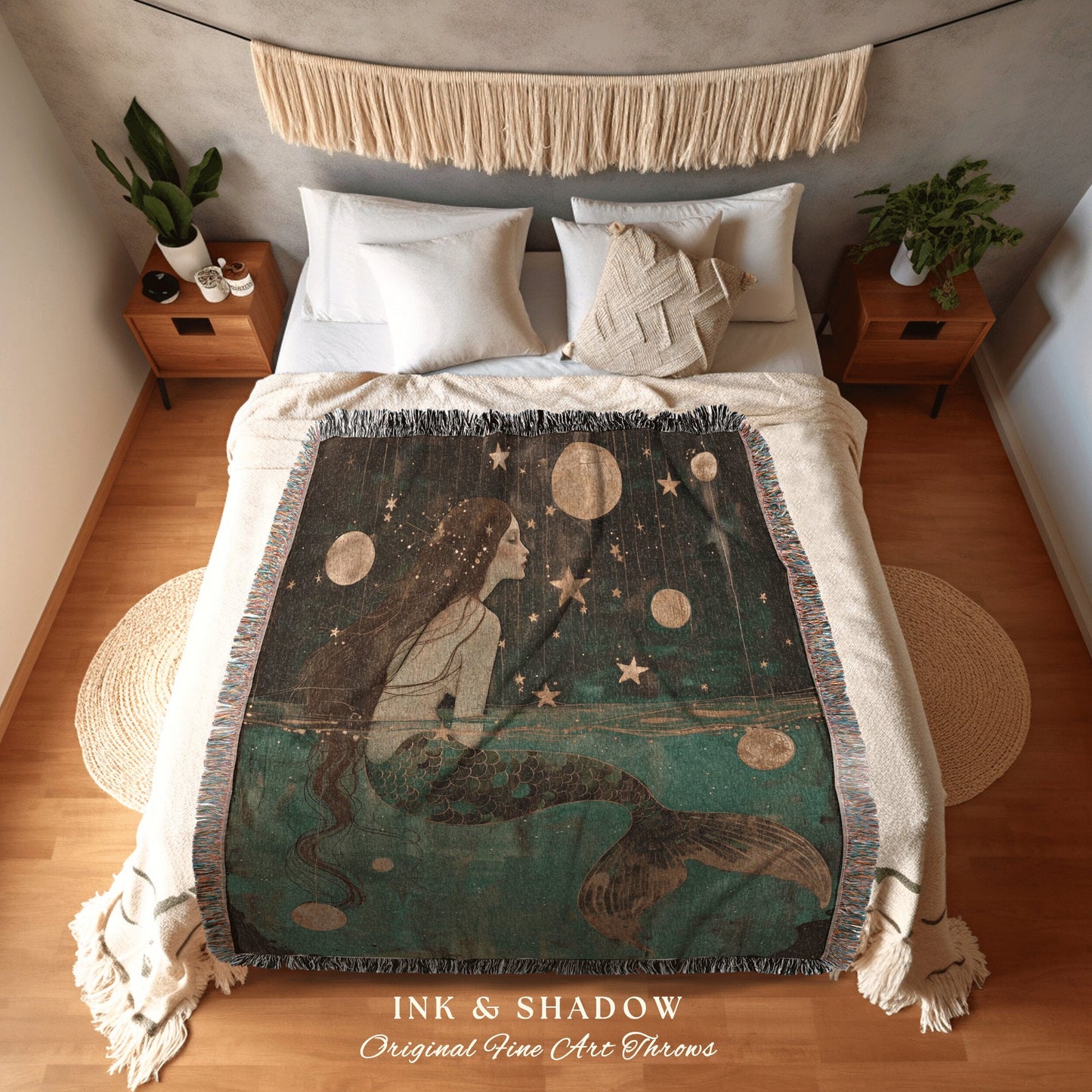 Golden Sea Witch Cozy Blanket | Fairycore Bedroom Celestial Siren Throw Ethereal Tapestry Sirencore Decor Witchy Wall Art Fairy Grunge Art |