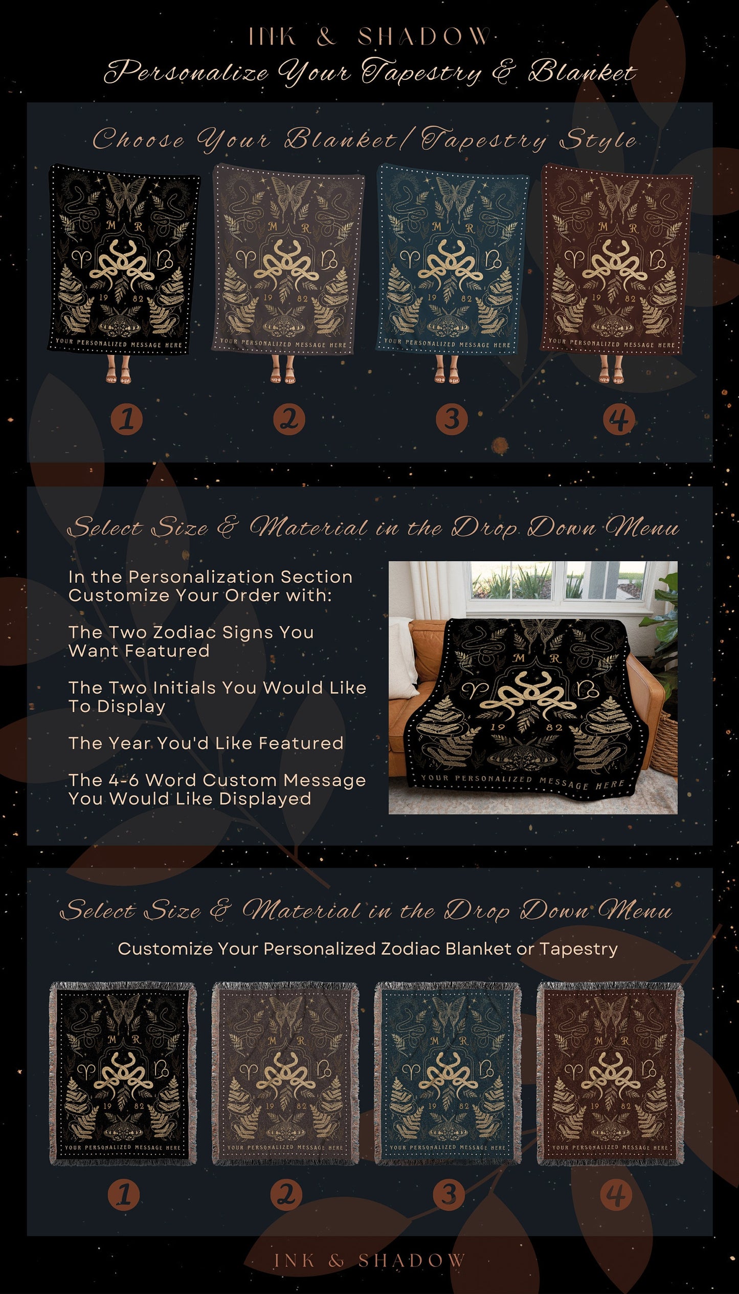 Gothic Anniversary Blanket | Celestial Wedding Anniversary Gift Couples Custom Star Sign Blanket Woven Throw Personalized Wedding Custom Art
