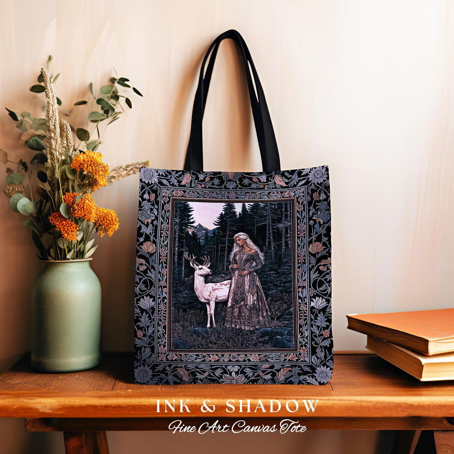 Gothic Forest Spirit Tapestry Tote | Dark Academia Storybook Aesthetic Witchy Baroque Bedroom Decor Forest Nymph Whimsigothic Fantasy Bag |
