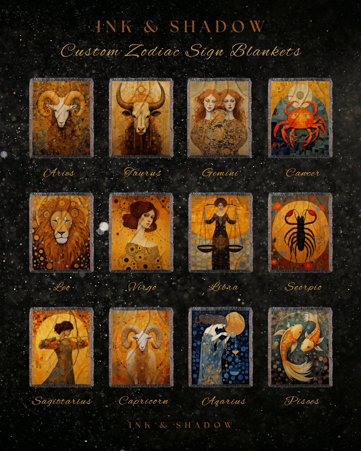 Libra Wall Art Tapestry Personalized Zodiac Art | Libra Wall Art Gustav Klimt | Custom Star Sign Woven Tapestry Celestial Art Blanket Woven