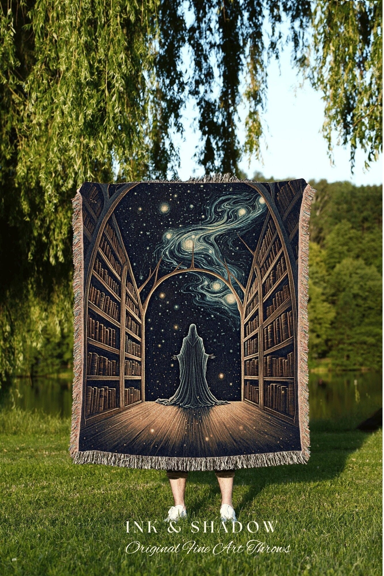 Magic Library Ghost Blanket | Ghost in Library Halloween Aesthetic Goth Art Victorian Ghost Painting Vintage Halloween Blanket Reader Gift |