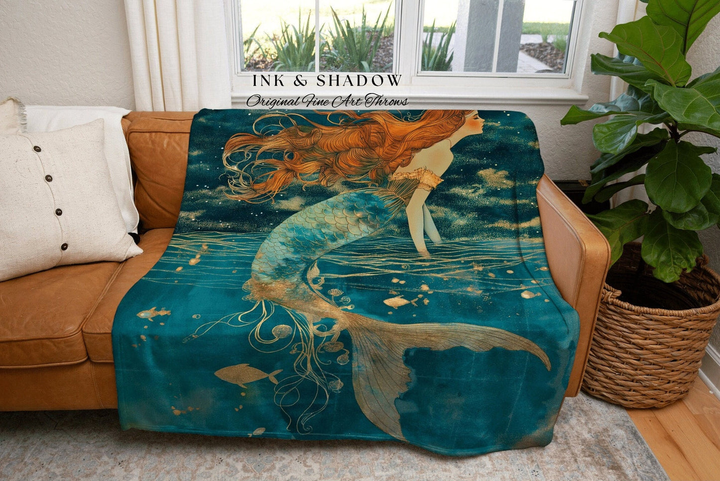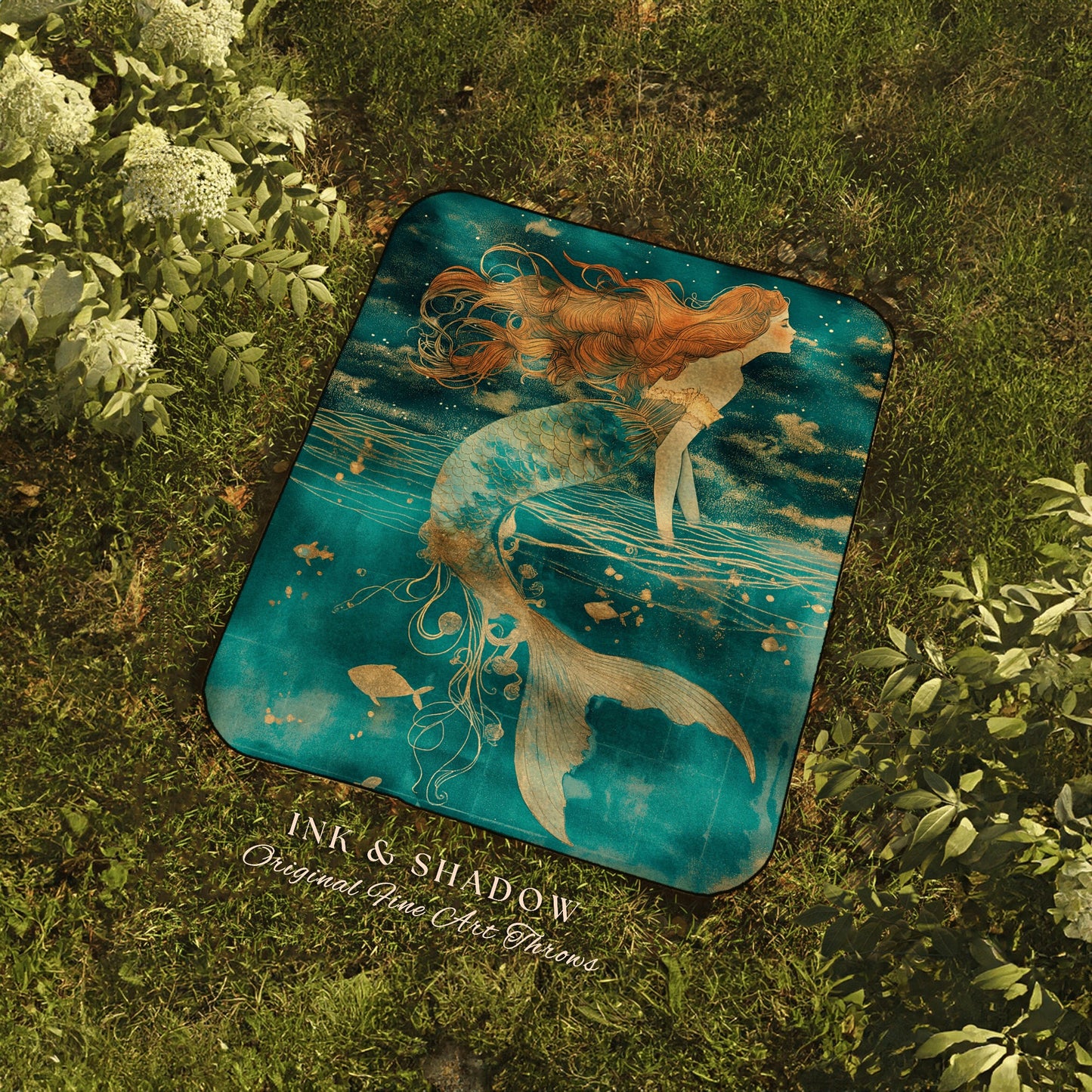 Mermaid Tapestry Blanket | Siren Aesthetic Celestial Wall Art Fairycore Decor Art Nouveau Woven Throw Fairy Grunge Room Decor Ethereal |