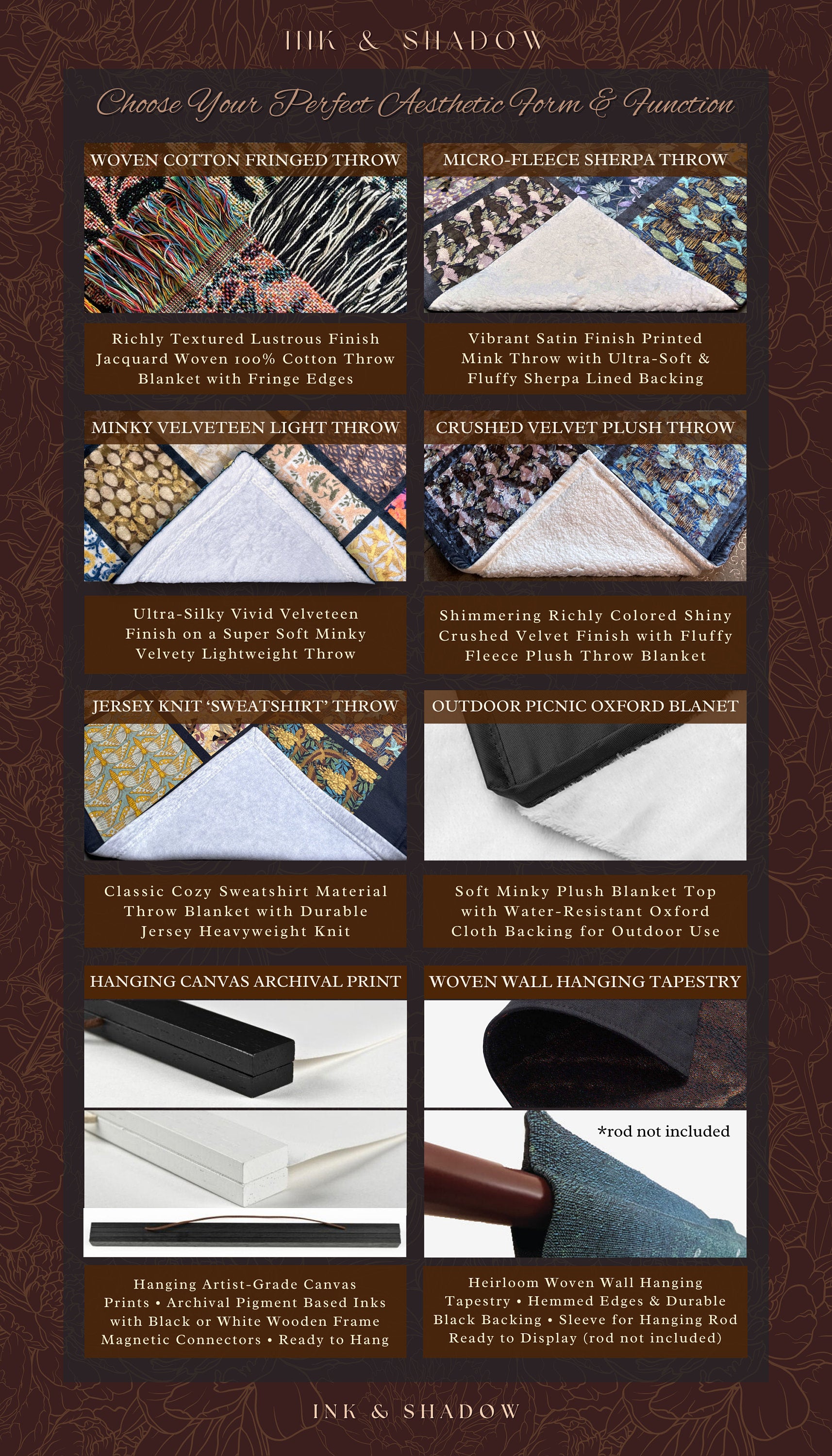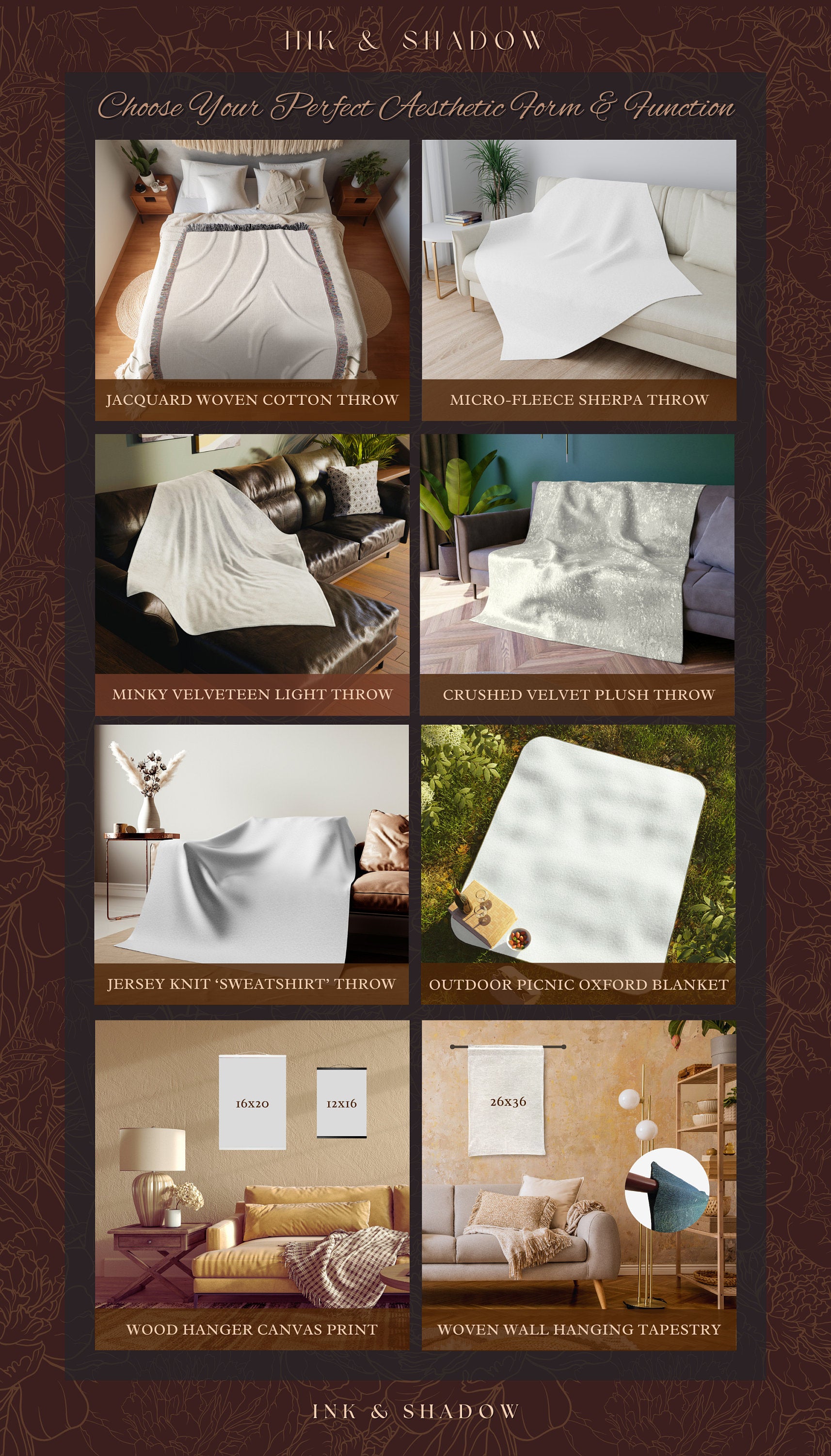 🎨 Our designs are made by the Ink & Shadow team and fulfilled by our Production Partners using advanced printing technology and state-of-the-art looms to ensure a quality products.
