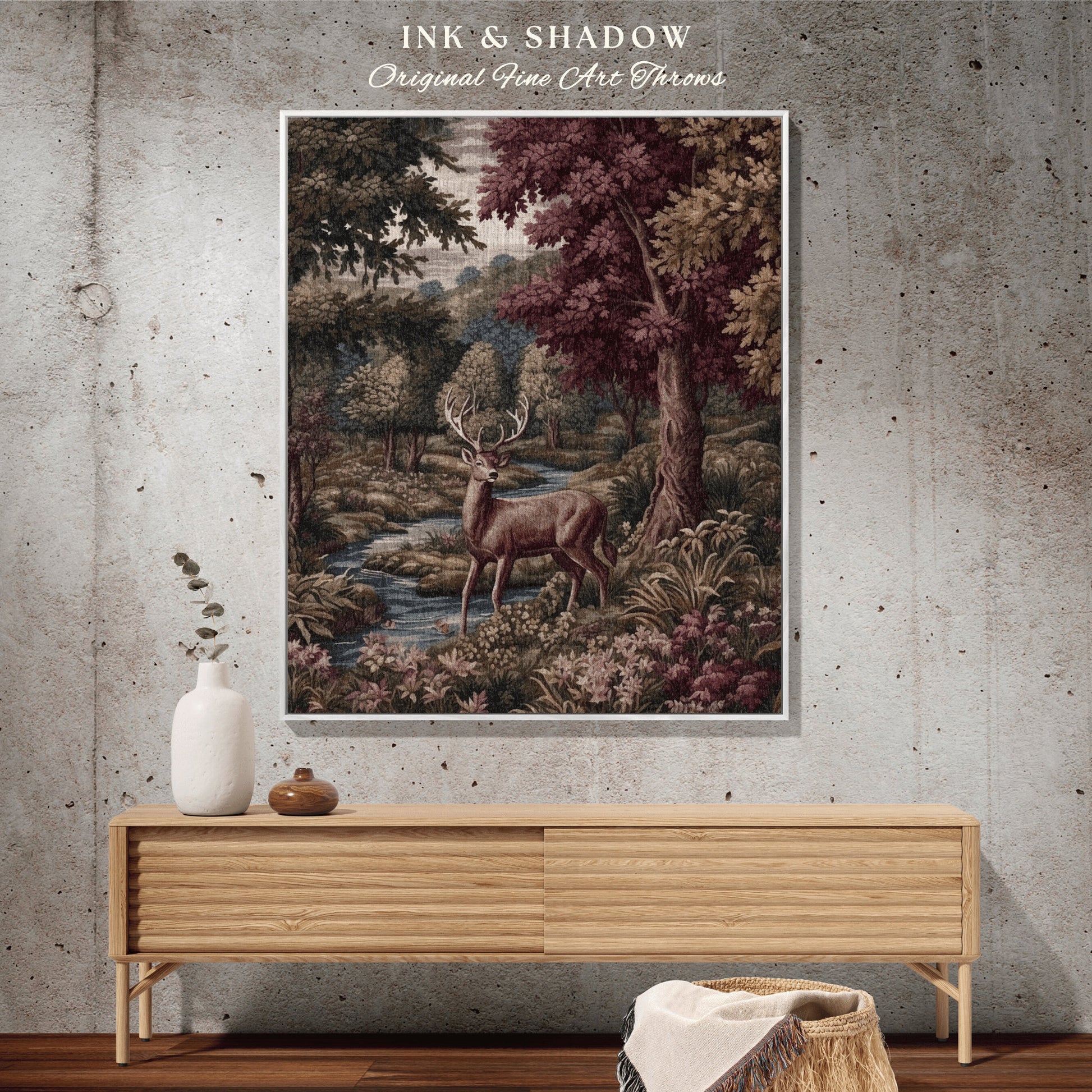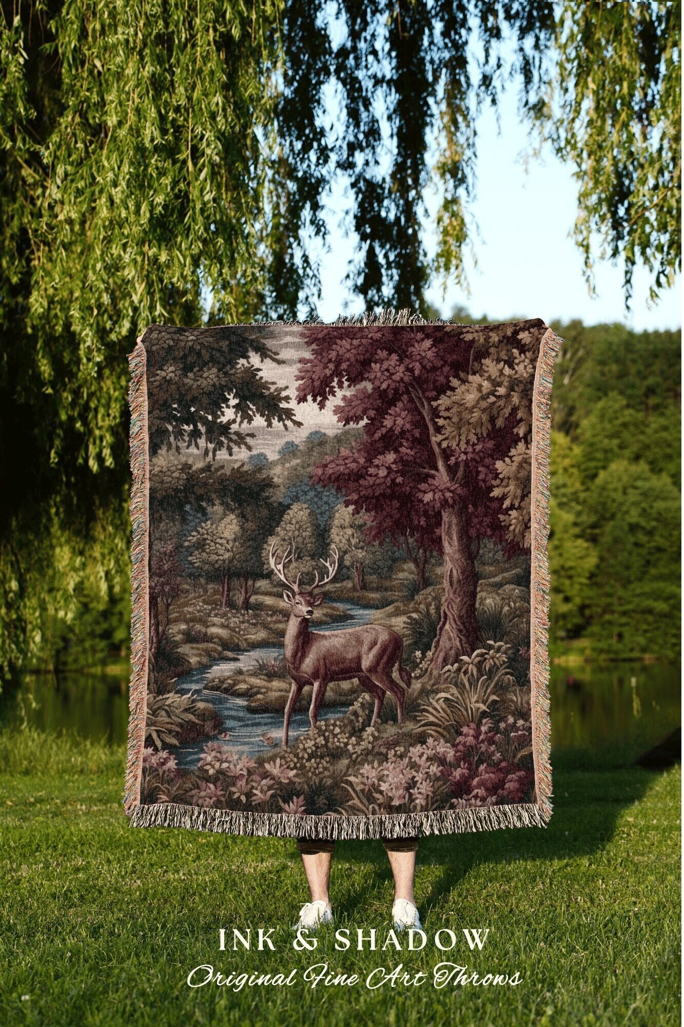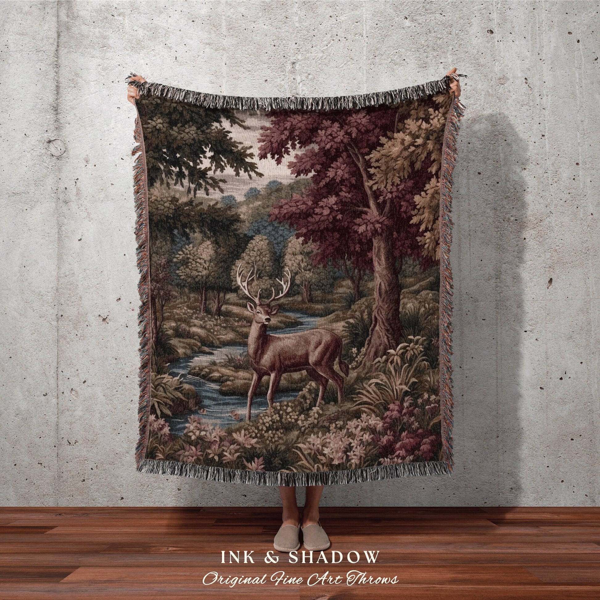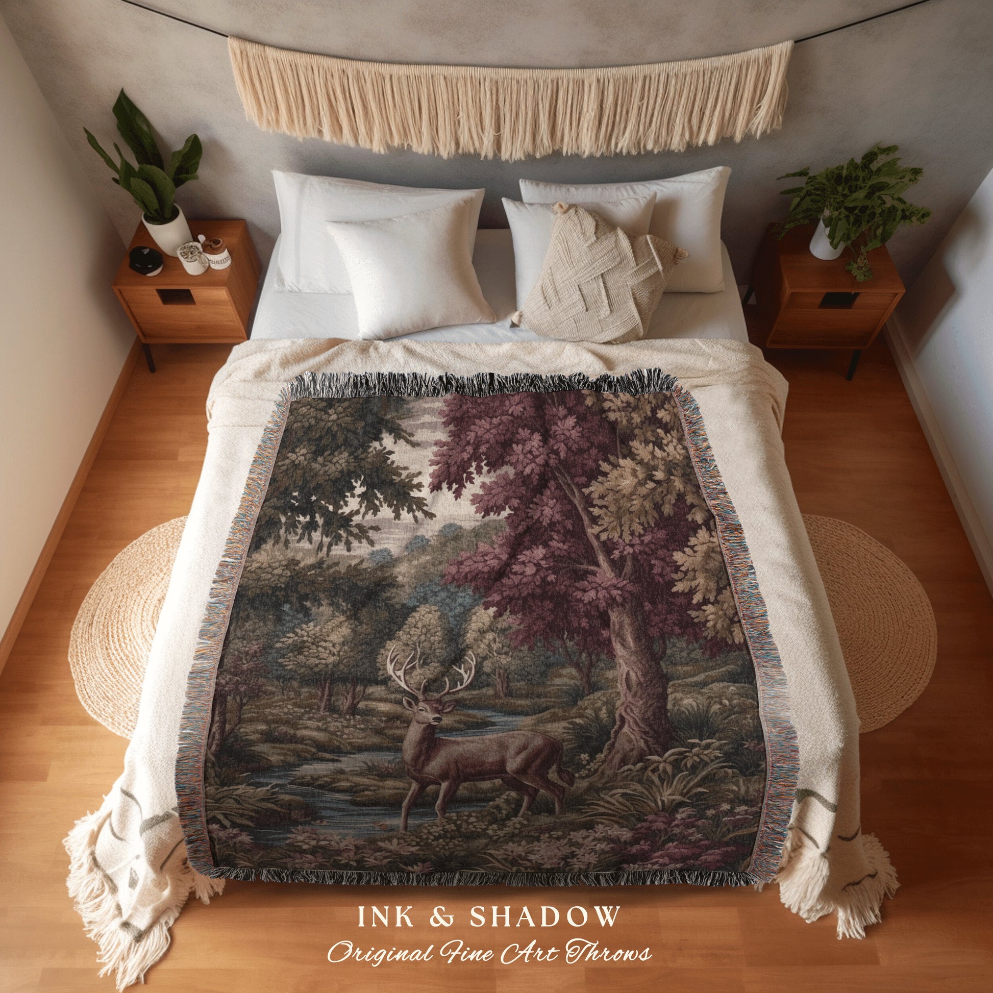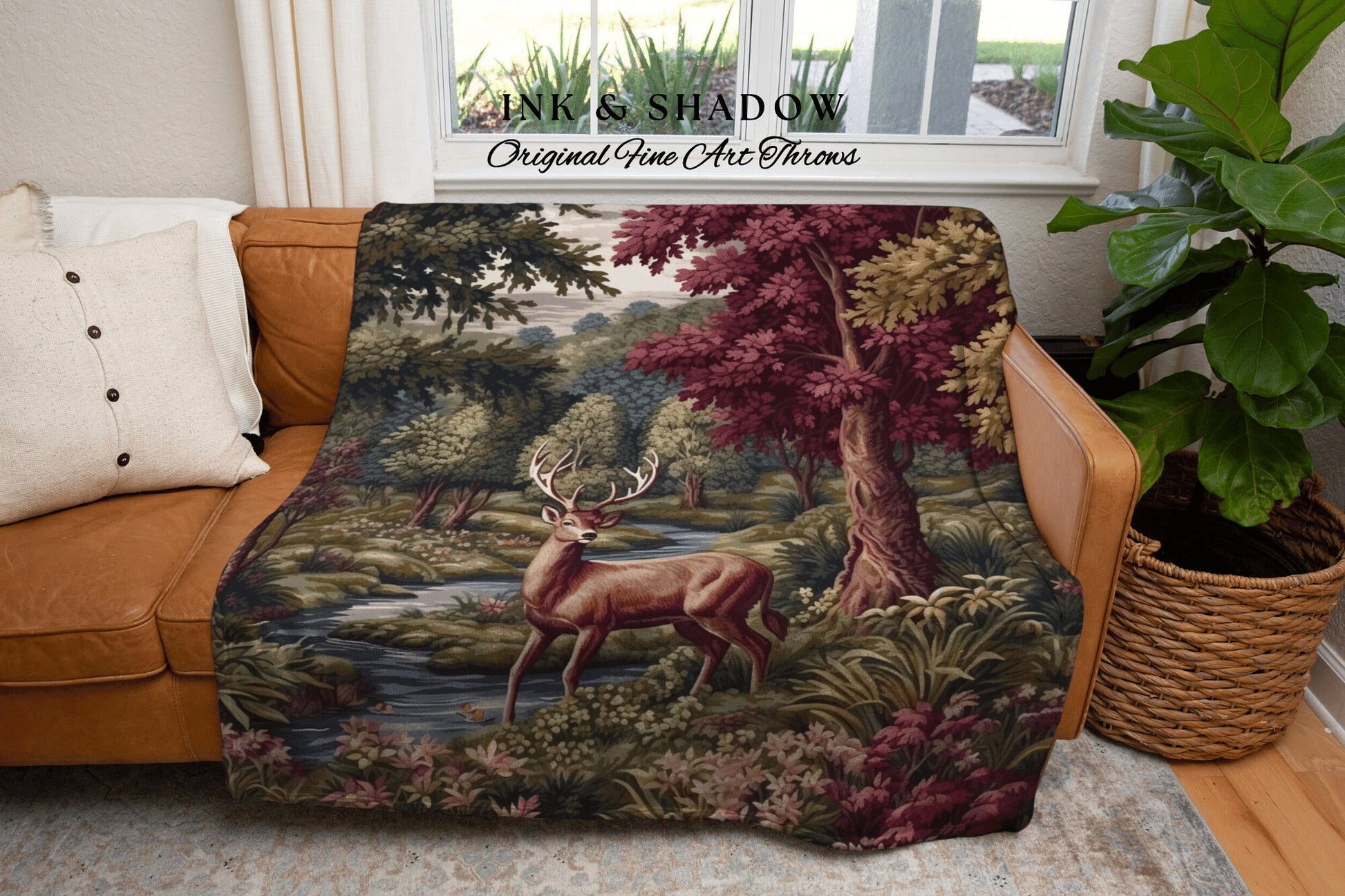 Moody Woodland Landscape Blanket | Folklore Blanket Woven Tapestry William Morris Throw Gothic Aesthetic Bedding Dark Academia Mystic Decor