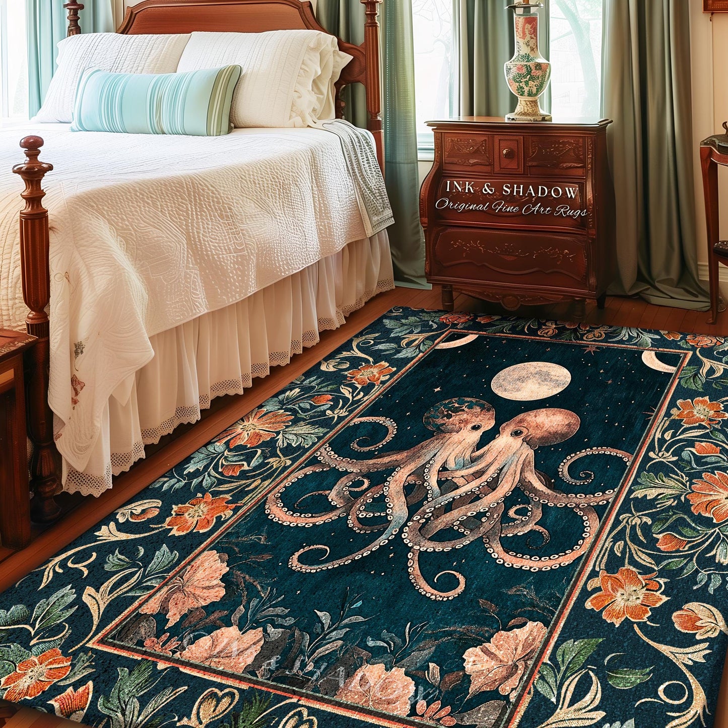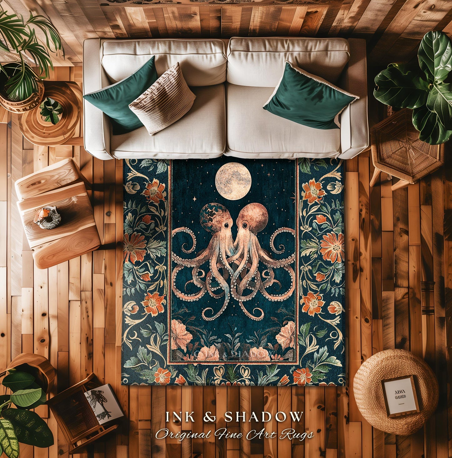 Moonlit Ocean Aesthetic Octopus Rug | Underwater Theme Ocean Aesthetic Eclectic Oddities Whimsical Area Rug Magical Ethereal Sea Life Accent