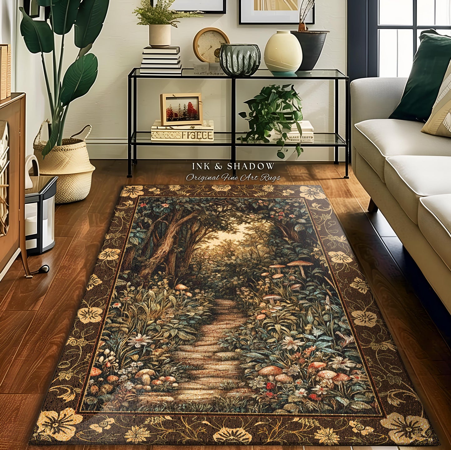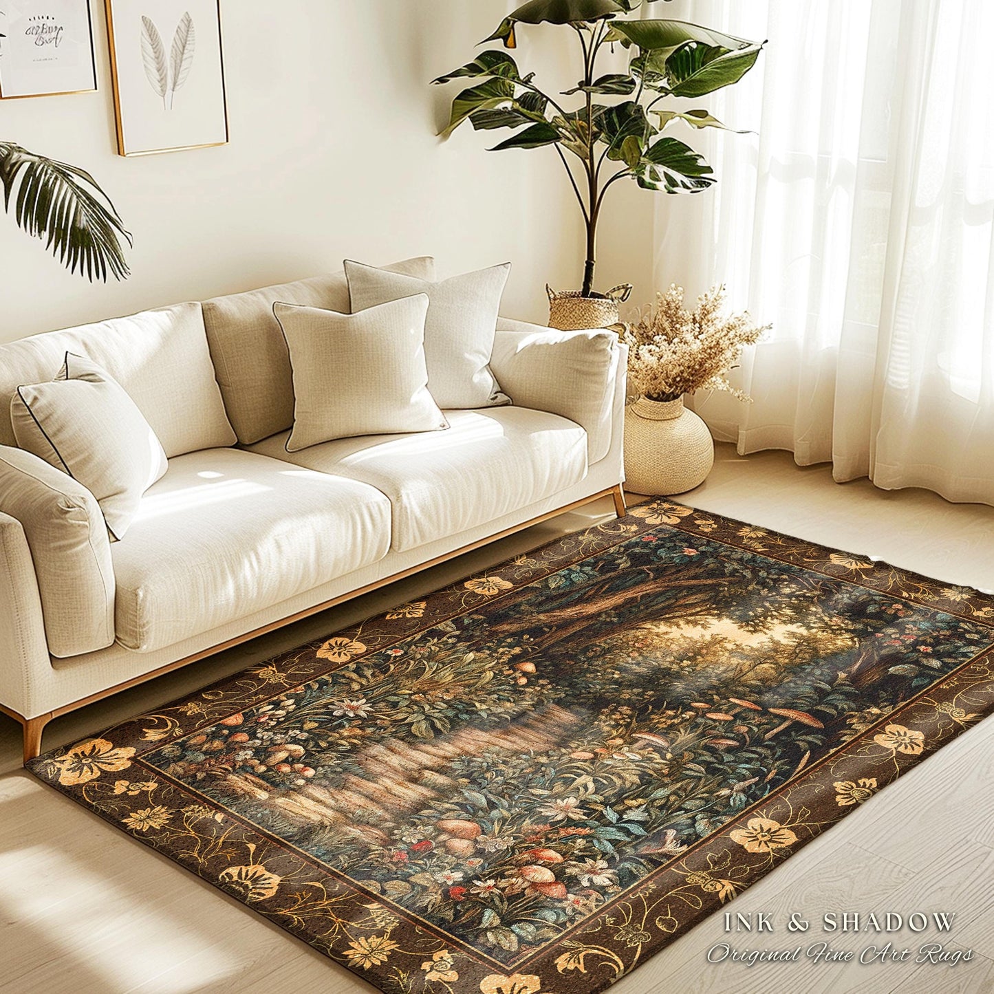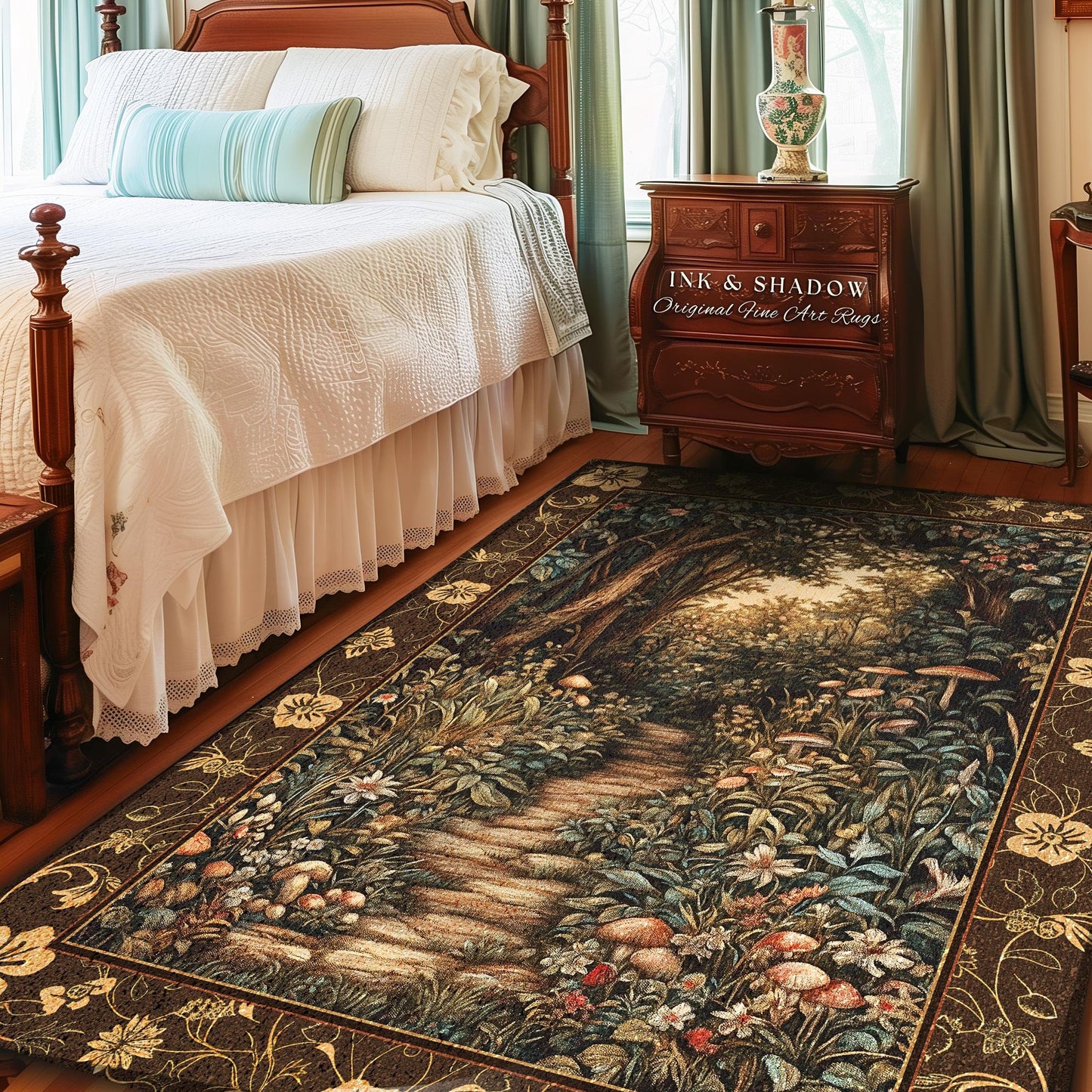 Mushroom Forest Magical Woodland Rug | Ethereal Mystic Academia Folklore Inspired Fairy Core Aesthetic Accent Rug Magical Bedroom Medieval