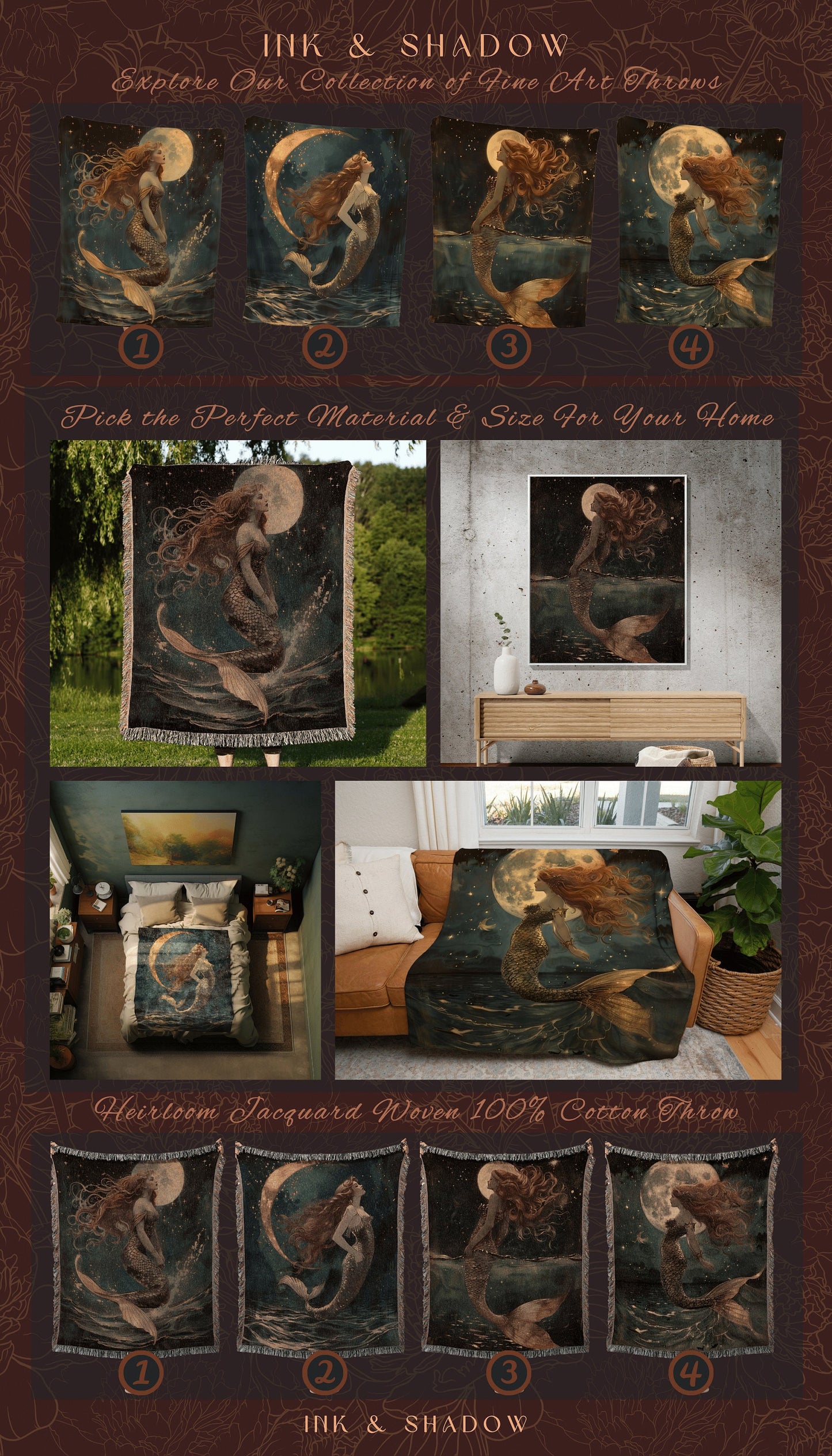 Mythology Tapestry Woven Throw | Fairycore Bedroom Celestial Siren Blanket Ethereal Sirencore Decor Art Nouveau Witchy Grunge Aesthetic
