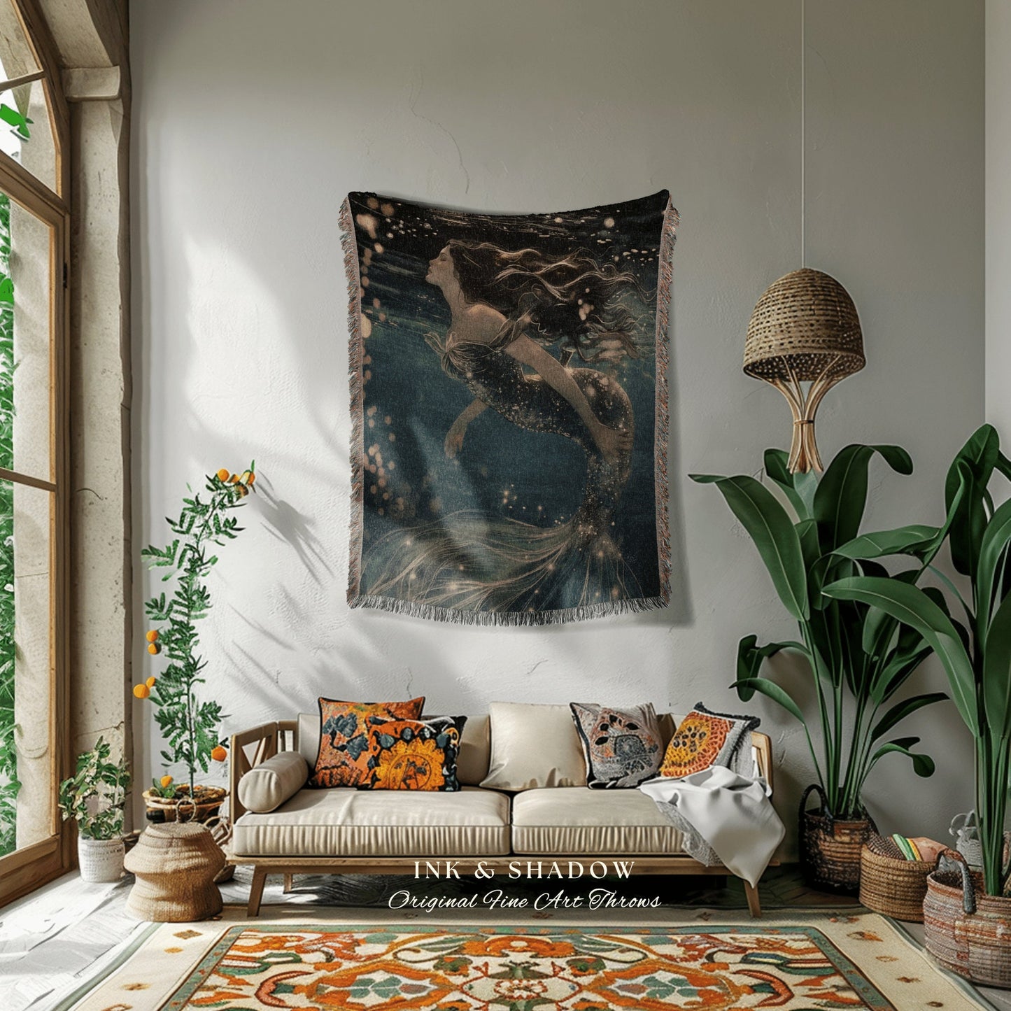 Ocean Aesthetic Woven Blanket | Dark Academia Bedroom Celestial Throw Ethereal Mermaid Core Royalcare Tapestry Sirencore Decor Celestial