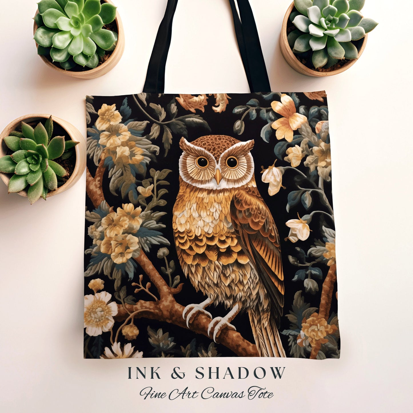 Owl Tapestry Tote Woven Bag Floral Cottageore Gift Morris Aesthetic Tote Whimsical Botanical Tapestry Woven Bag Victorian Fairycore Owl Bag