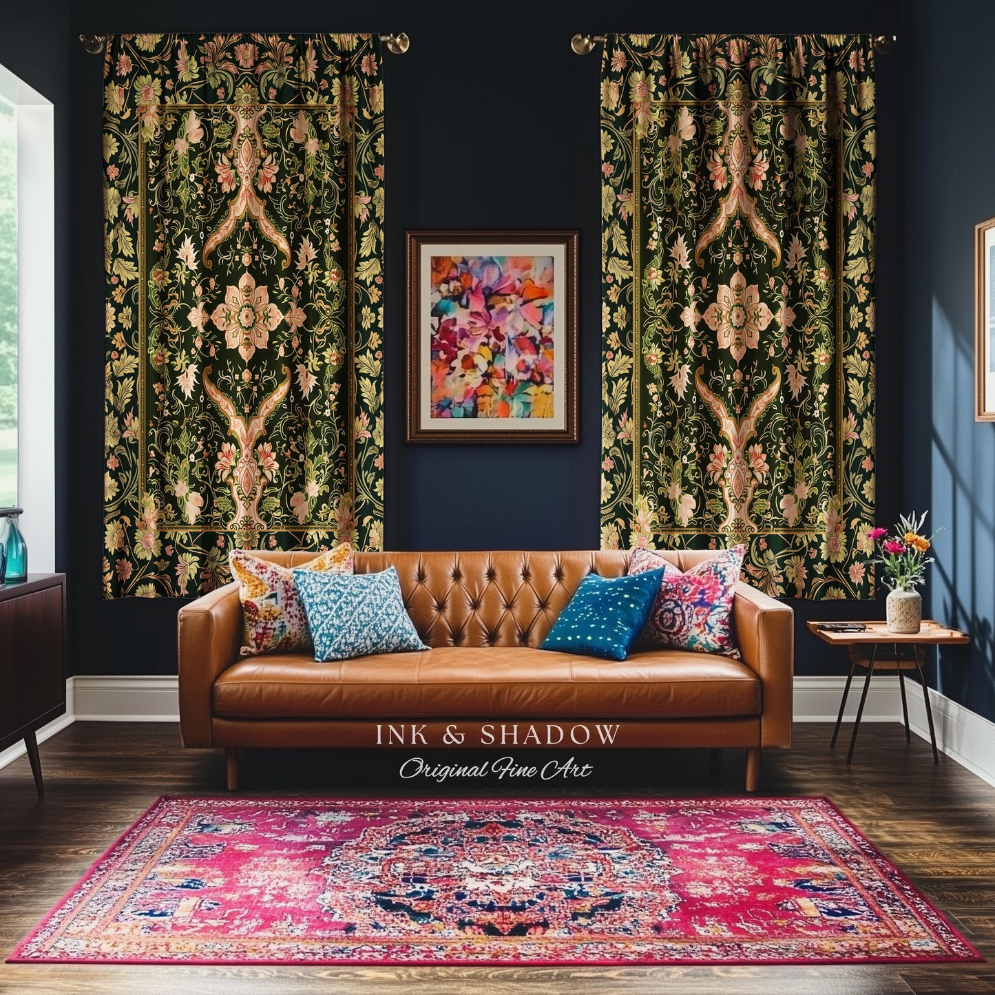 Pastel Botanicals Elegant Curtains | Bohemian Ornate Cottagecore Baroque Home Drapes Whimsical Bohemian Classic Floral Elegance Art Deco |
