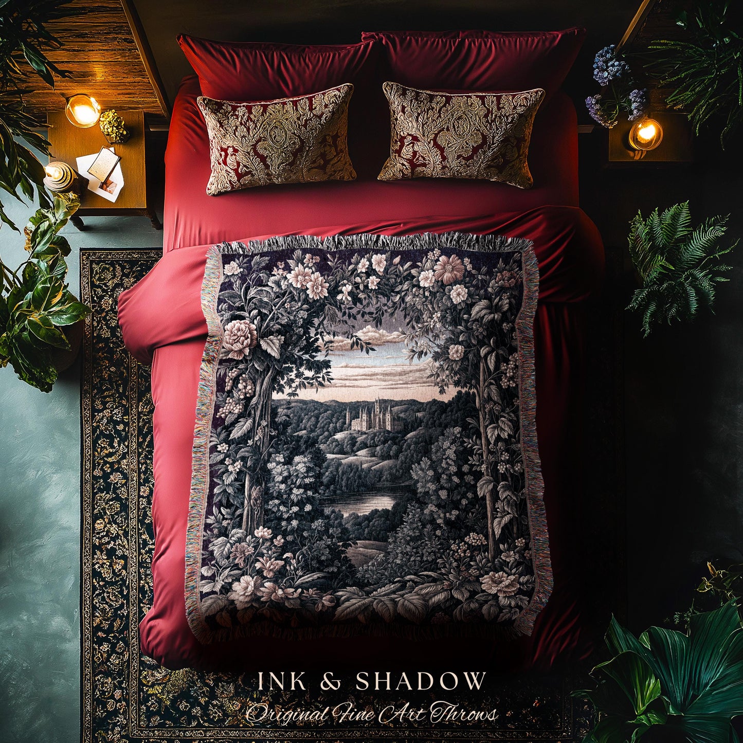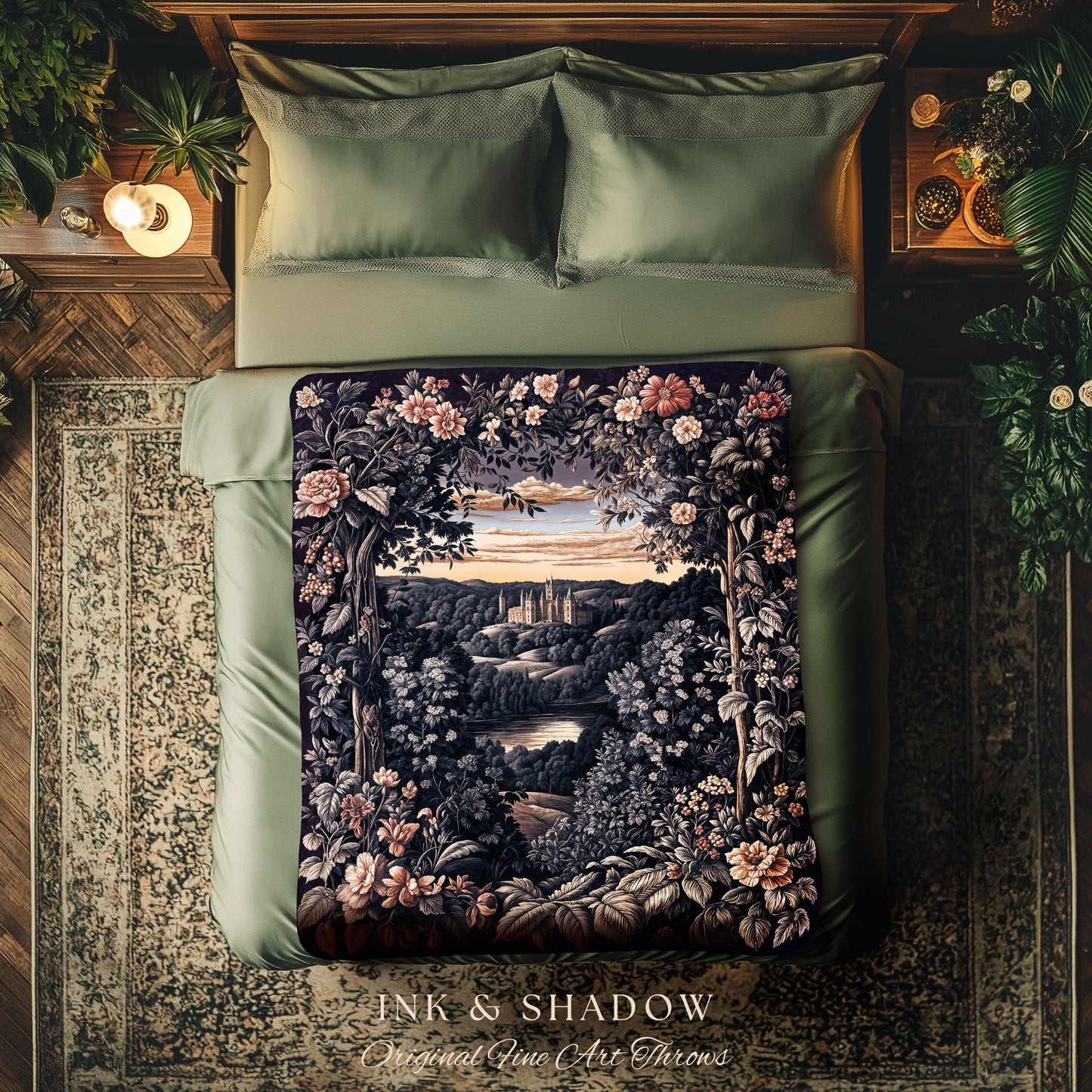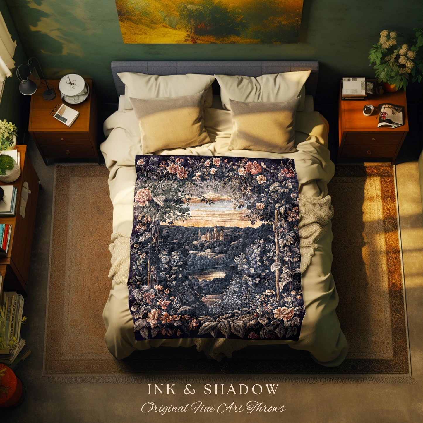 Pastel Fairy Aesthetic Wall Tapestry | Ethereal Woodland Royalcore Rosy Woven Blanket Bedroom Botanical Landscape Medieval Princess Rustic |