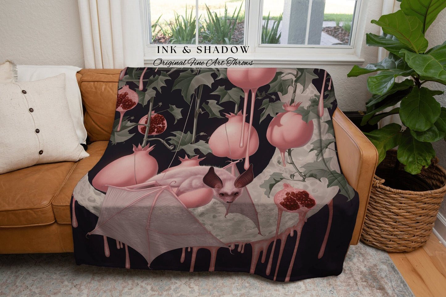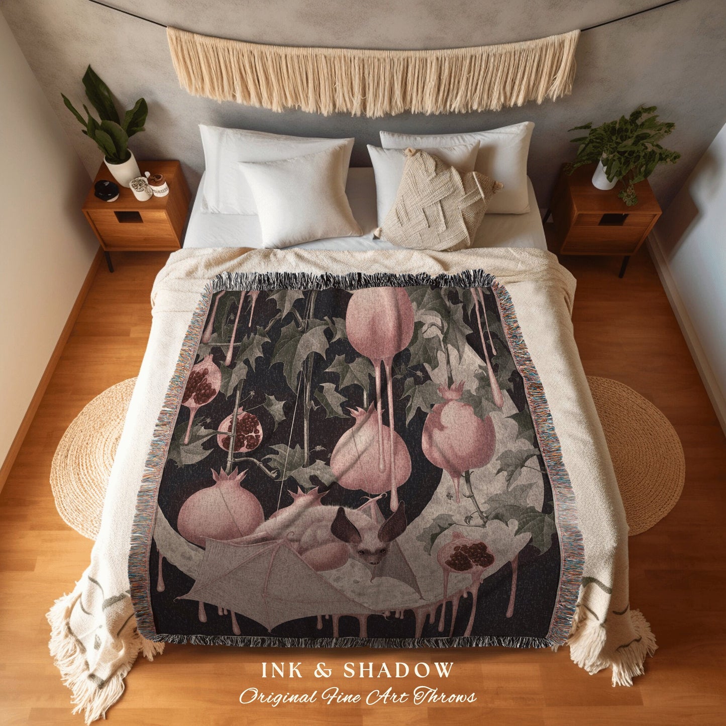Pastel Pink Bat Blanket Woven Tapestry Cottagecore Decor | Pastel Goth Tapestry Pink Bedroom Decor Fruit Bat Pink Pastel Wall Art Whimsical