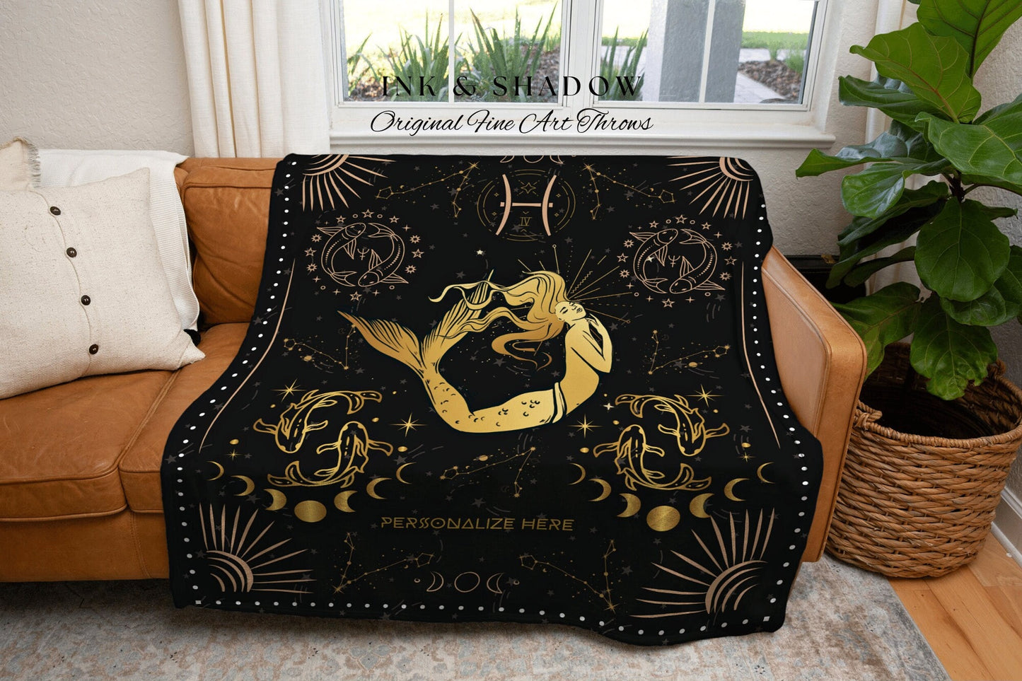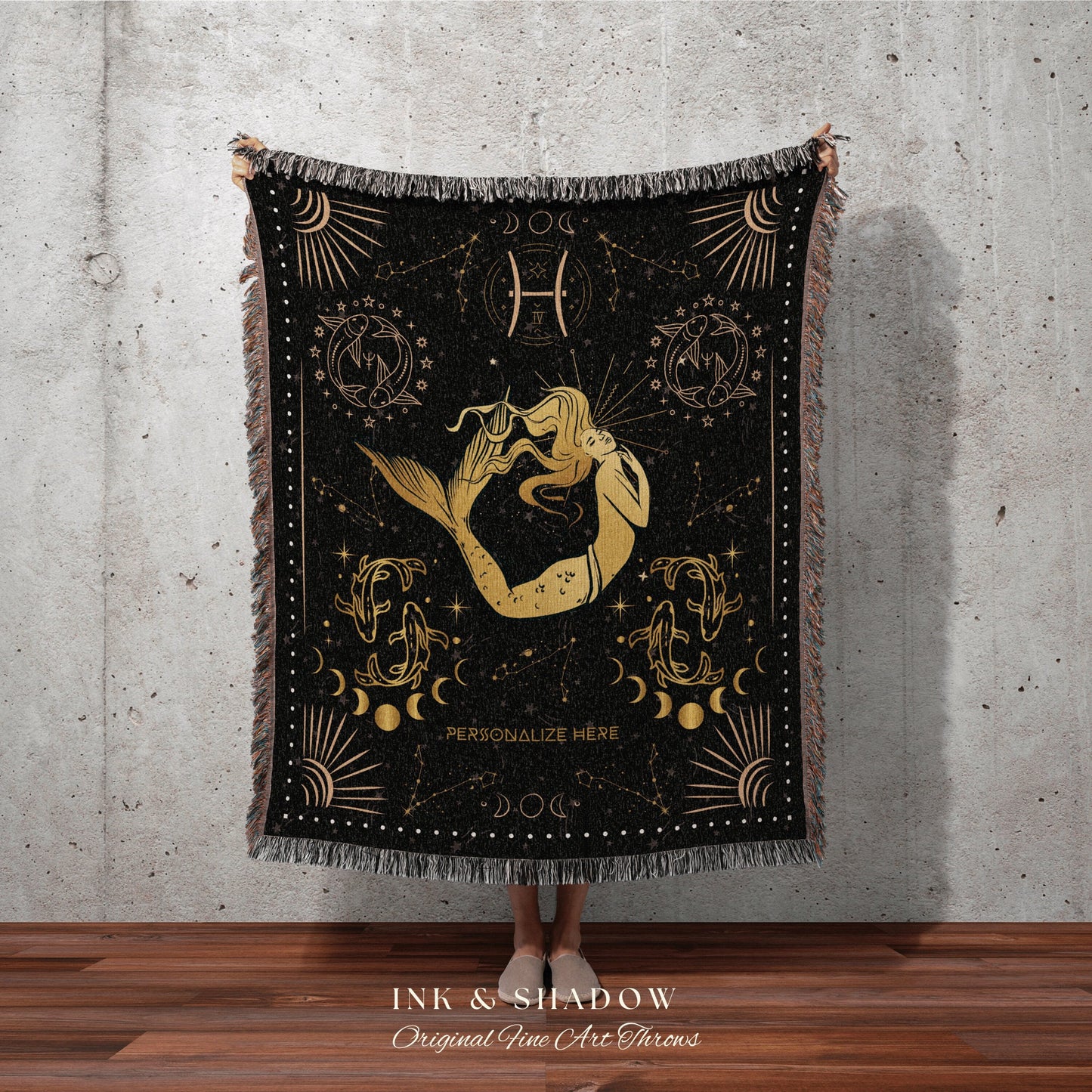Pisces Zodiac Sign Tapestry | Pisces Blanket Custom Star Sign Gothic Woven Blanket Witchy Room Decor Pisces Custom Astrology Personalized |
