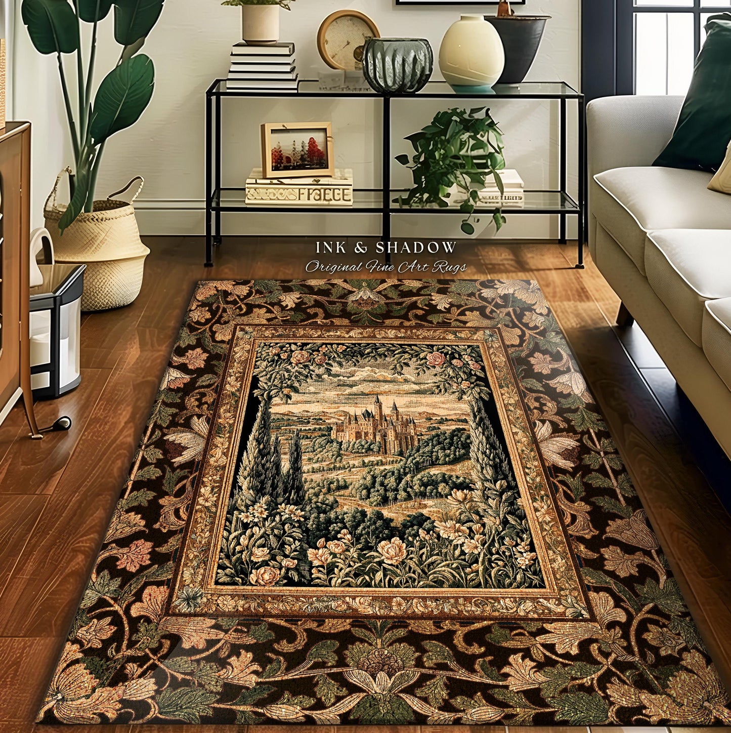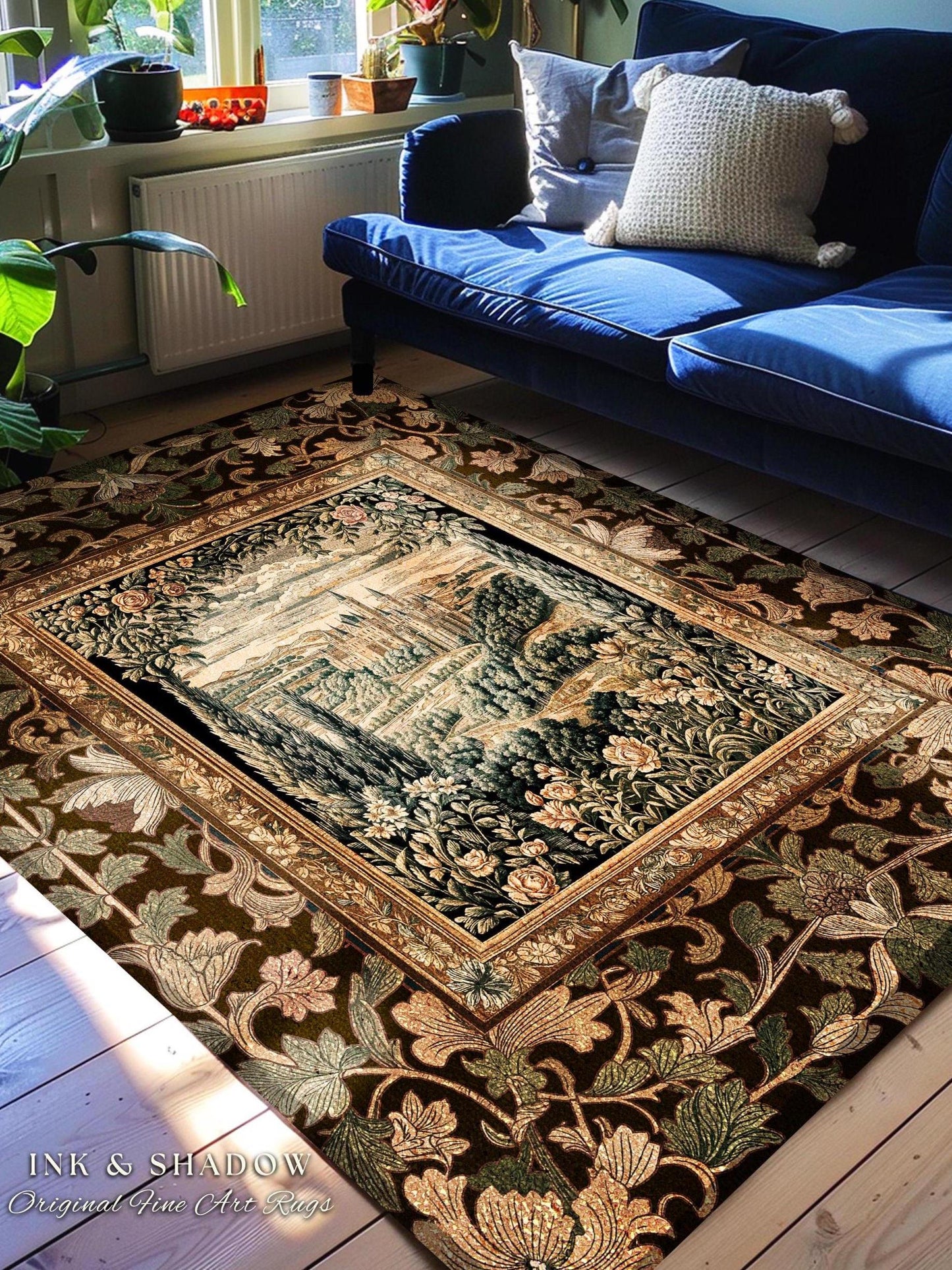 Romantic Victorian Botanical Accent Rug | Medieval Woodland Fairytale Castle Whimsigothic Folklore Romantic Princesscore Victorian Artwork |