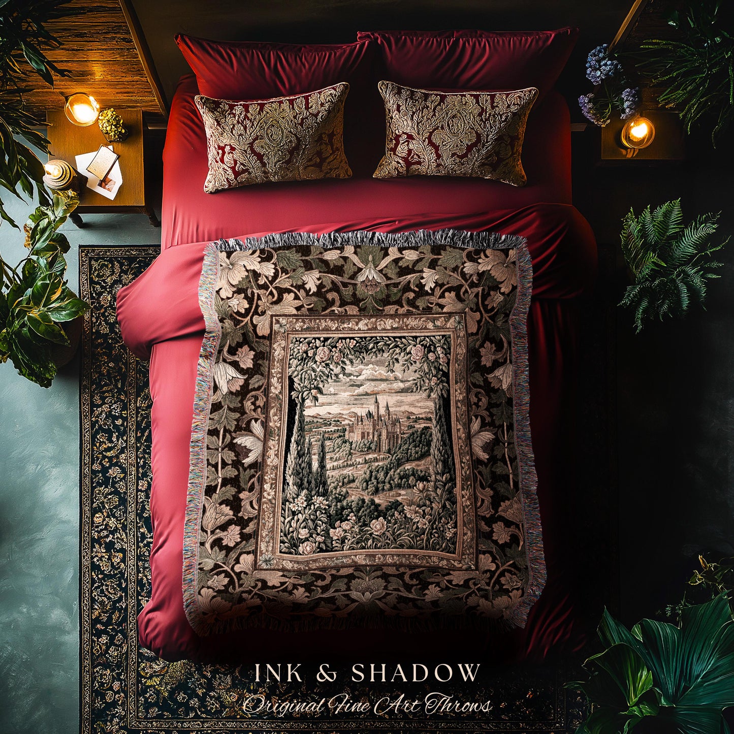 Romantic Victorian Botanical Woven Coverlet | Medieval Woodland Fairytale Castle Whimsigothic Folklore Romantic Princesscore Victorian Art |