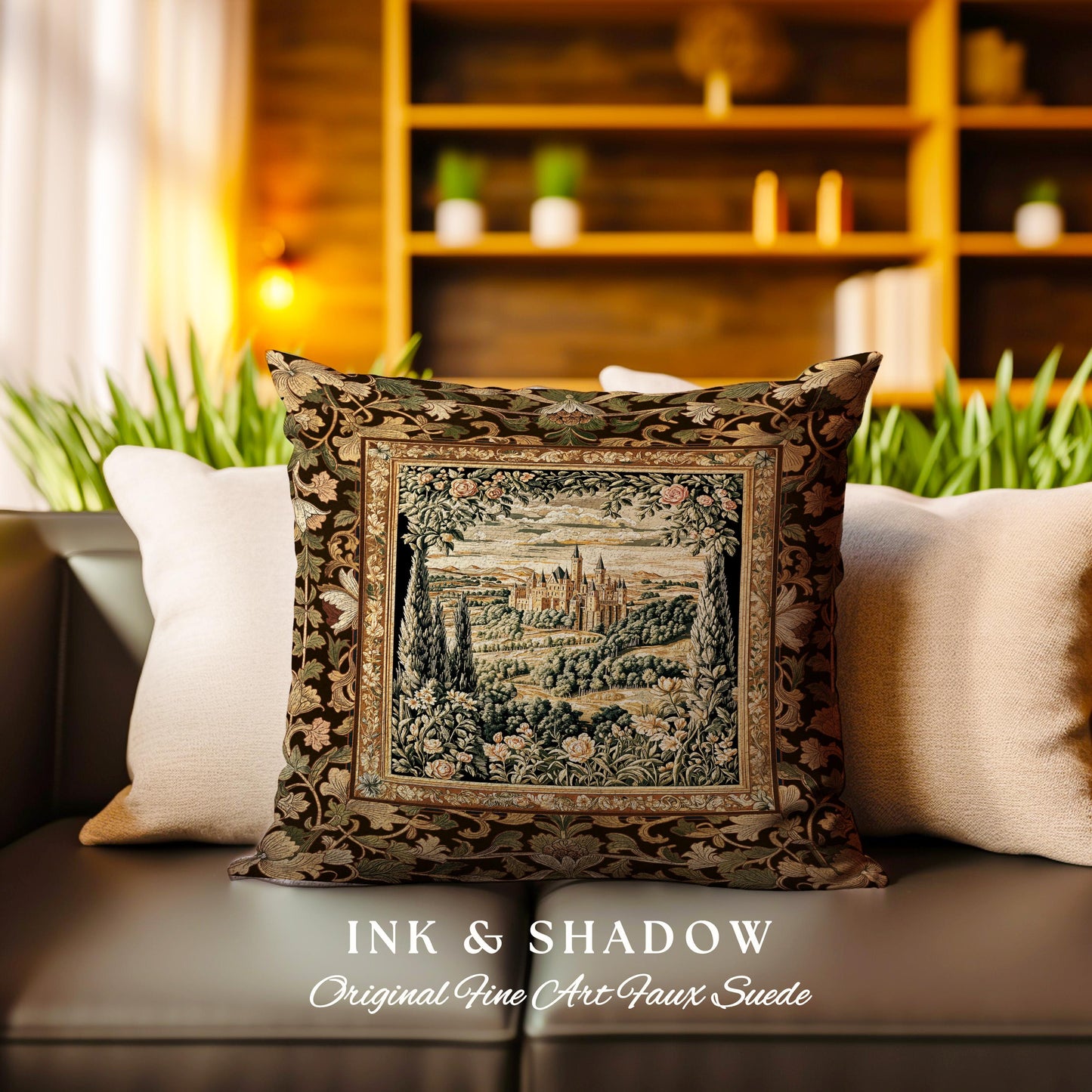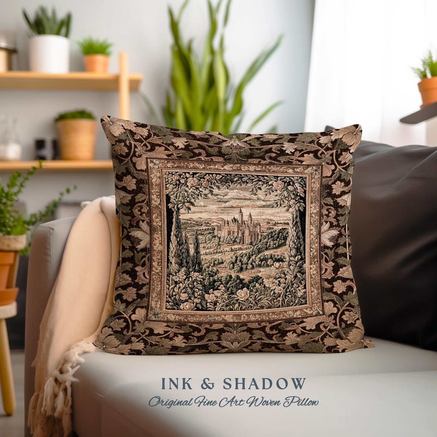 Romantic Victorian Botanical Woven Pillow | Medieval Woodland Fairytale Castle Whimsigothic Folklore Romantic Princesscore Victorian Cushion