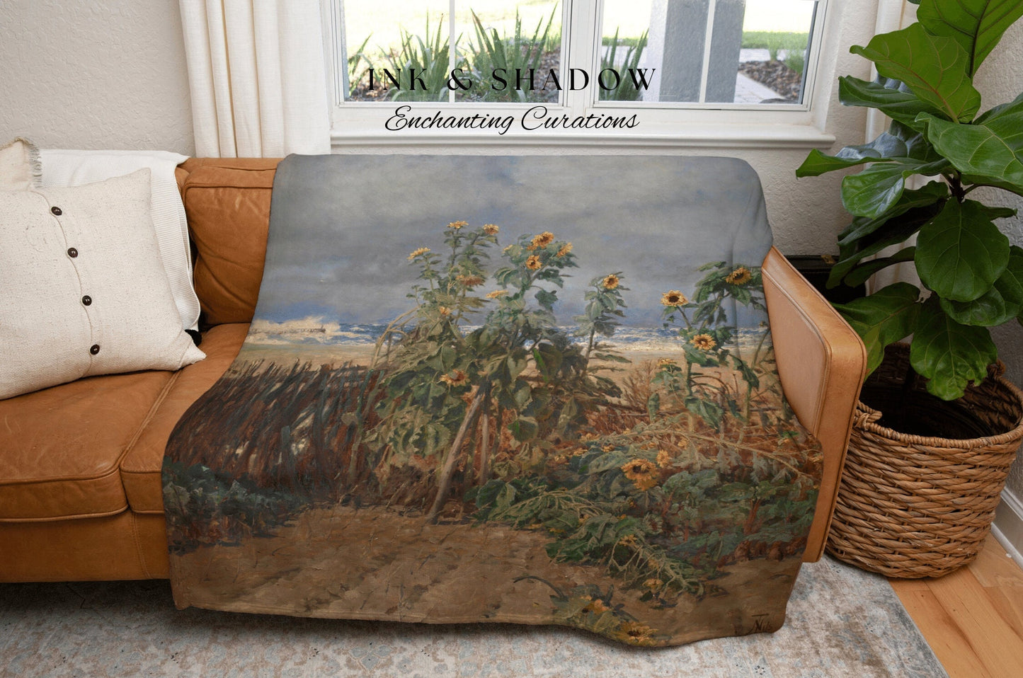Sunflower Painting Tapestry Woven | Vintage Art Woven Blanket | Sunflower Aesthetic Tapestry Woven | Bookish Room Decor Aesthetic Blanket |