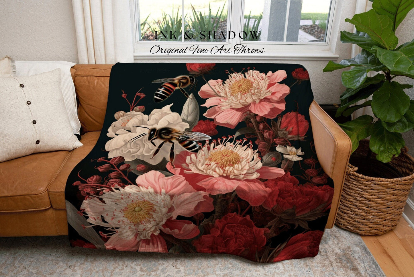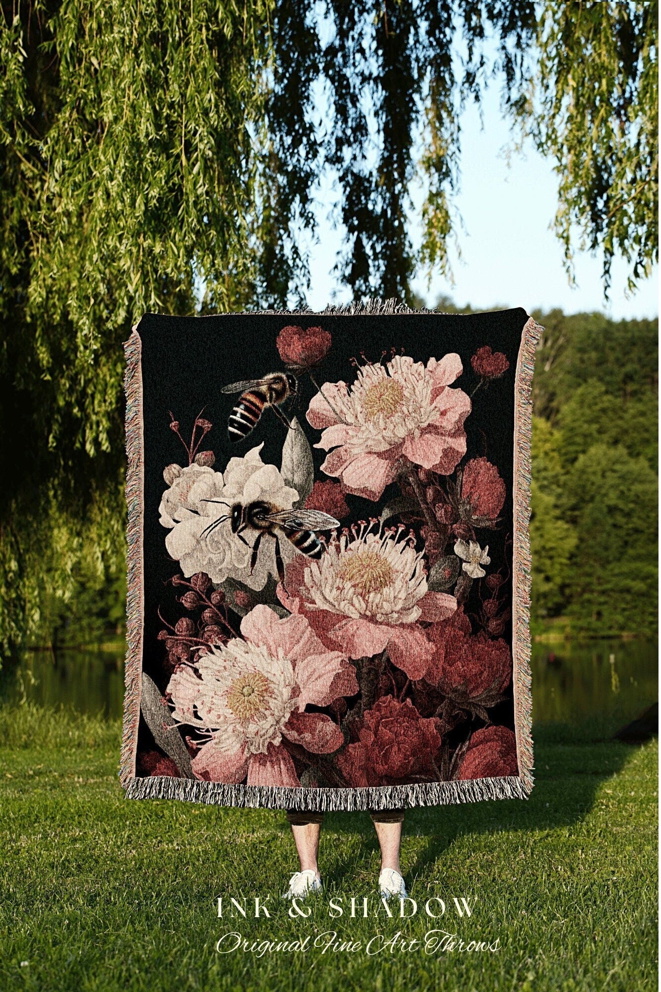 Victorian Gothic Bee Tapestry Woven Wall Hanging | Vintage Floral Painting Blanket Woven | Pastel Decor Bee Aesthetic Floral Dorm Room Decor