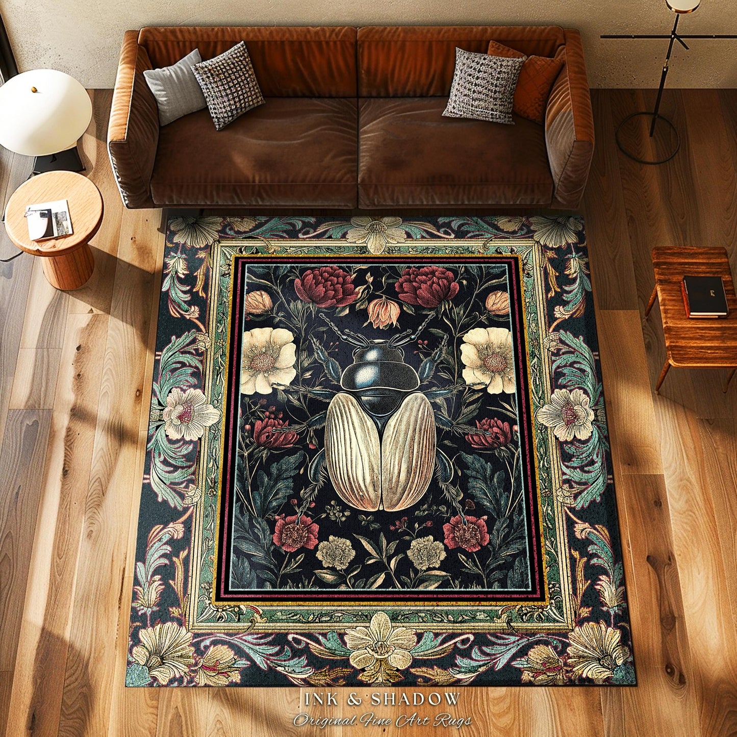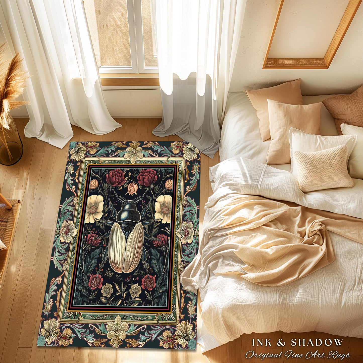 Victorian Gothic Floral Beetle Rug Vintage Aesthetic Dark Botanical Bug Decor | Macabre Whimsigothic Enchanted Forest Wildflower Insect Art