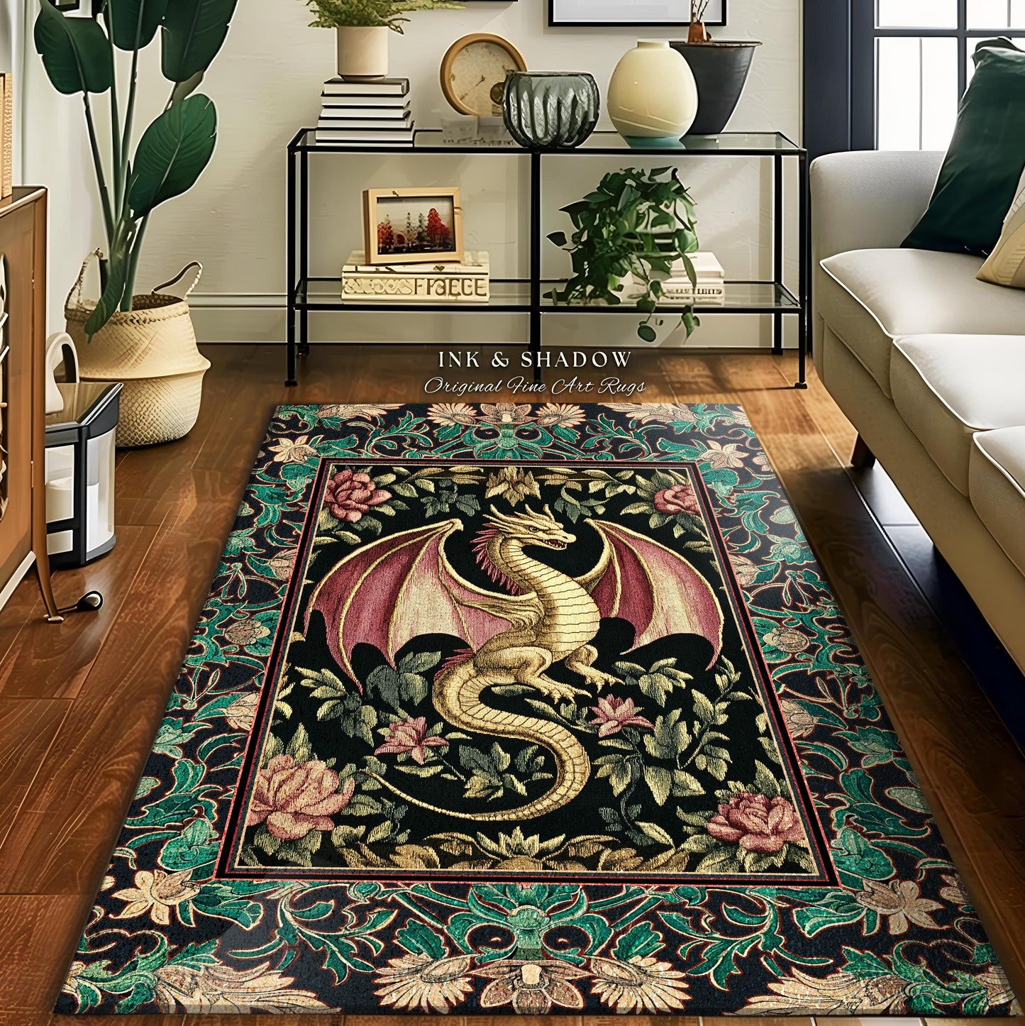 Victorian Gothic Medieval Dragon Rug | Enchanted Ornate Baroque Fantasy Home Accent Mystical Vintage Whimsigoth Woodland Bedroom Art Trendy