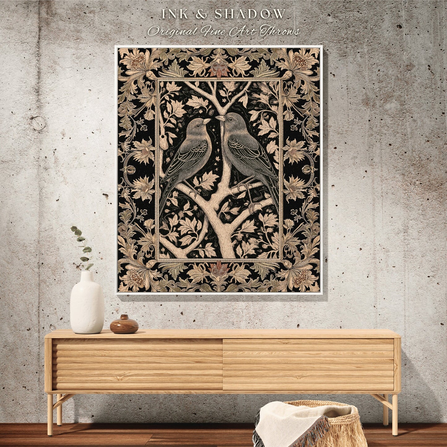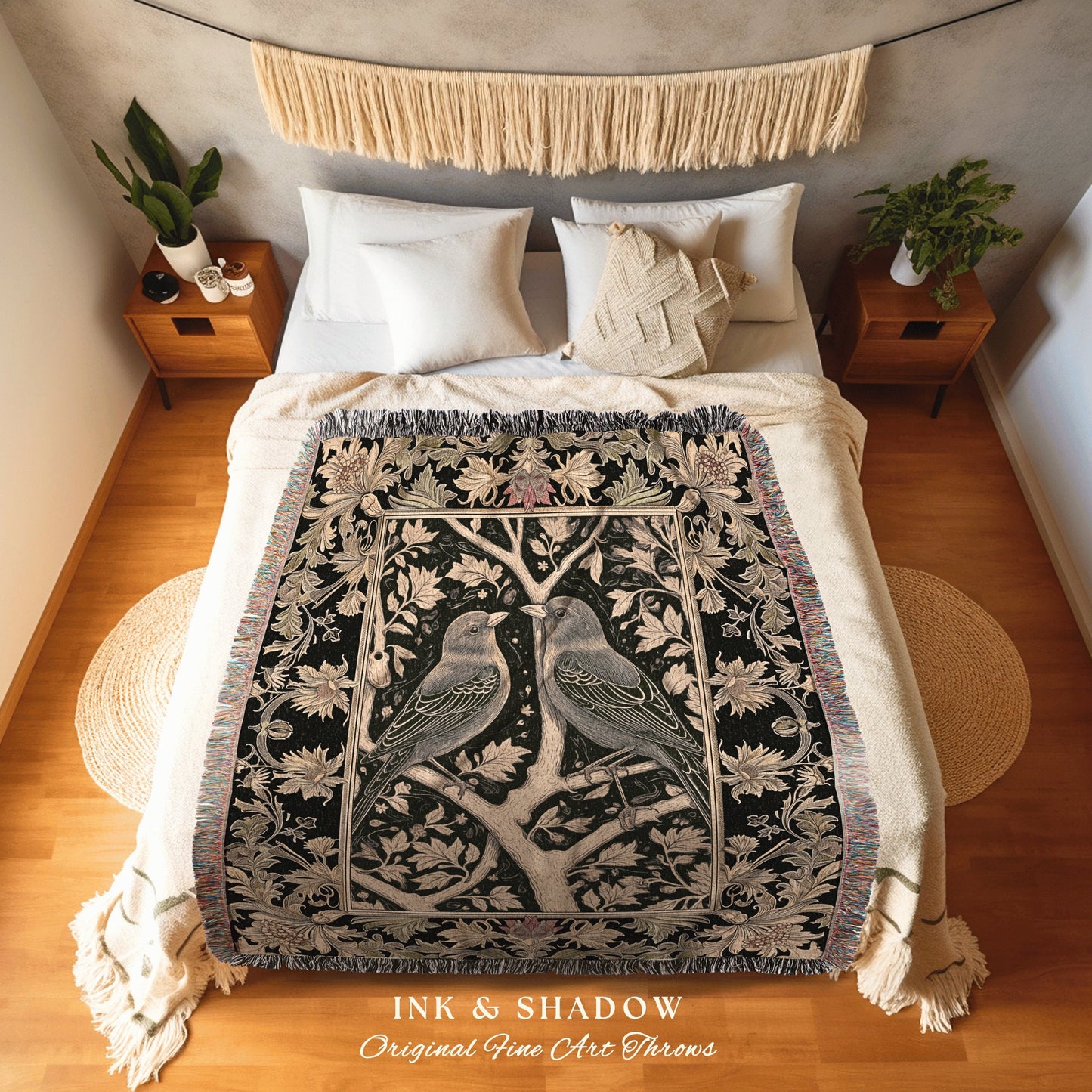 Victorian Gothic Raven Throw Dark Academia Tapestry Crowcore Cottagecore Home Decor Vintage Aesthetic Tapestry Crow Art Decor Blanket Woven