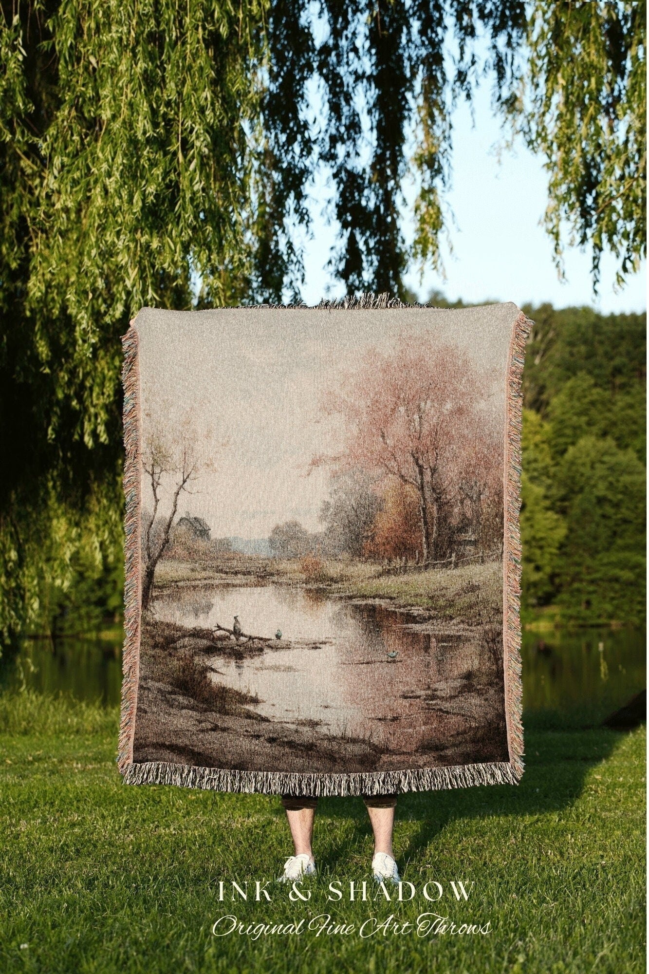 Vintage Fall Landscape Tapestry Blanket Fall Decor Wall Tapestry Woven Art Housewarming Gift | Throw Blanket Autumn Aesthetic Home Decor |