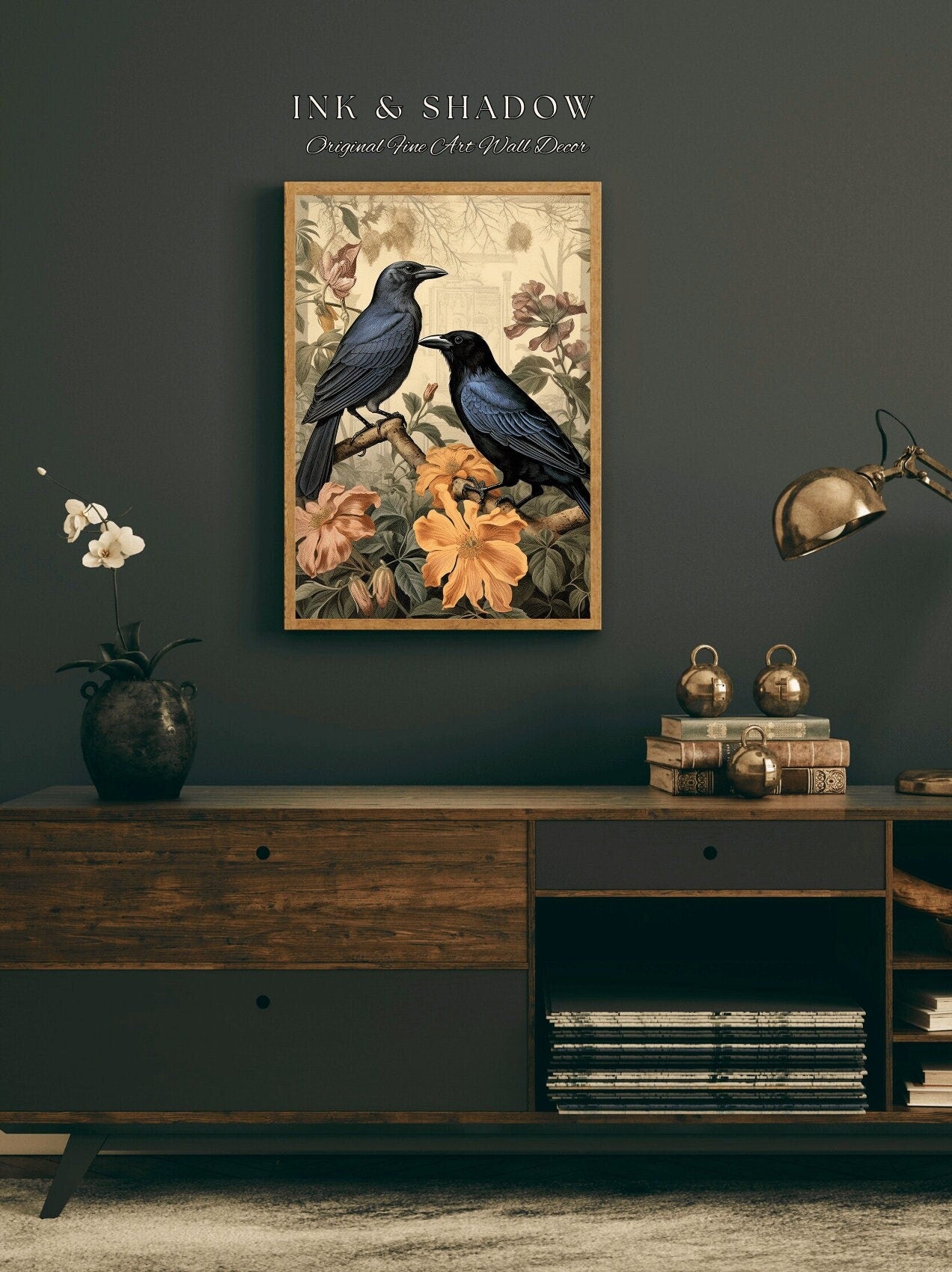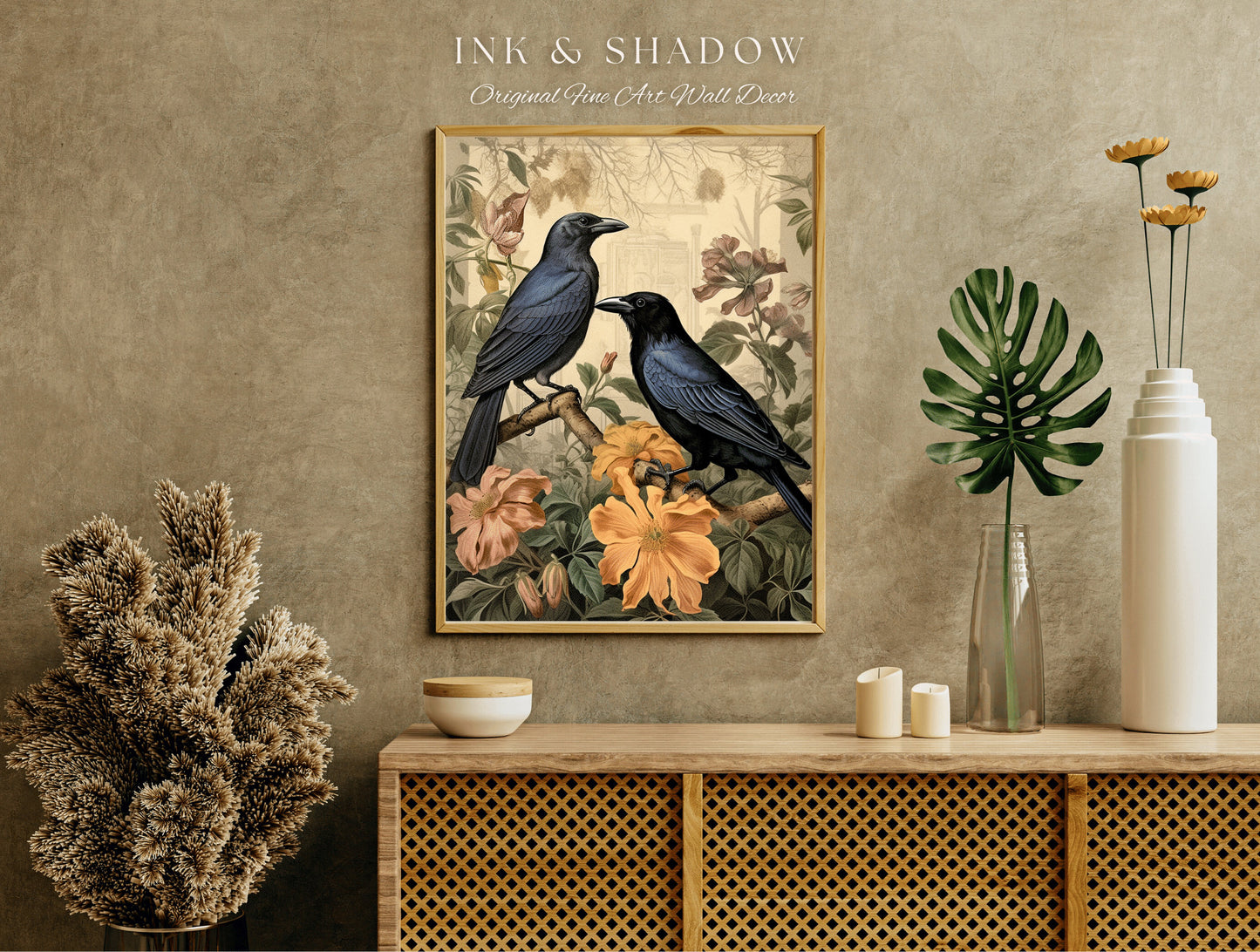 Vintage Raven Wall Art Gothic Bedroom Decor | Black Crow Raven Decor Dark Academia Print | Occult Room Decor Printable Art Crowcore Wall Art