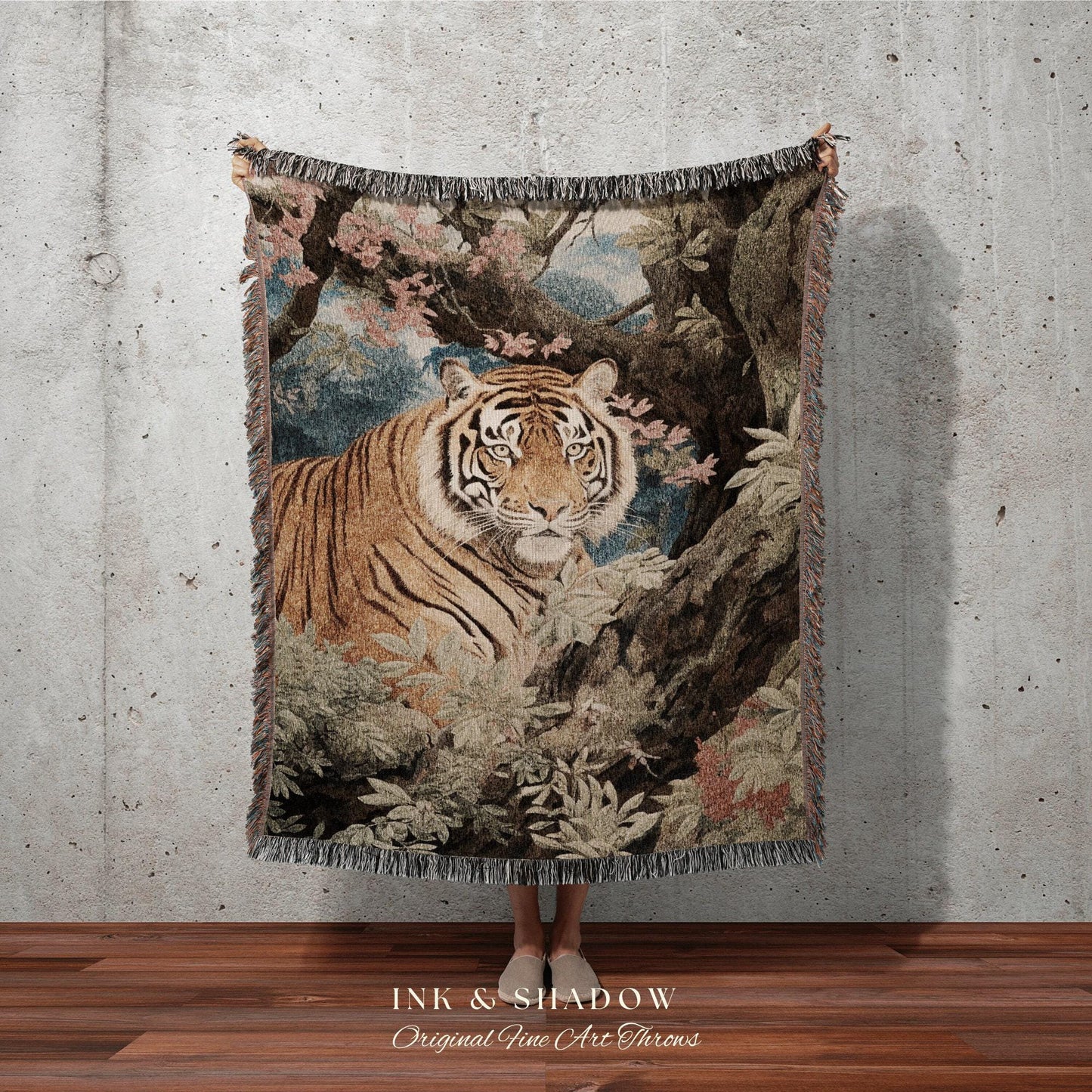 Vintage Tiger Blanket Woven Tapestry | Gothic Renaissance Blanket Woven Blanket Jungle Cat | Whimsigoth Room Decor Jungle Aesthetic Blanket