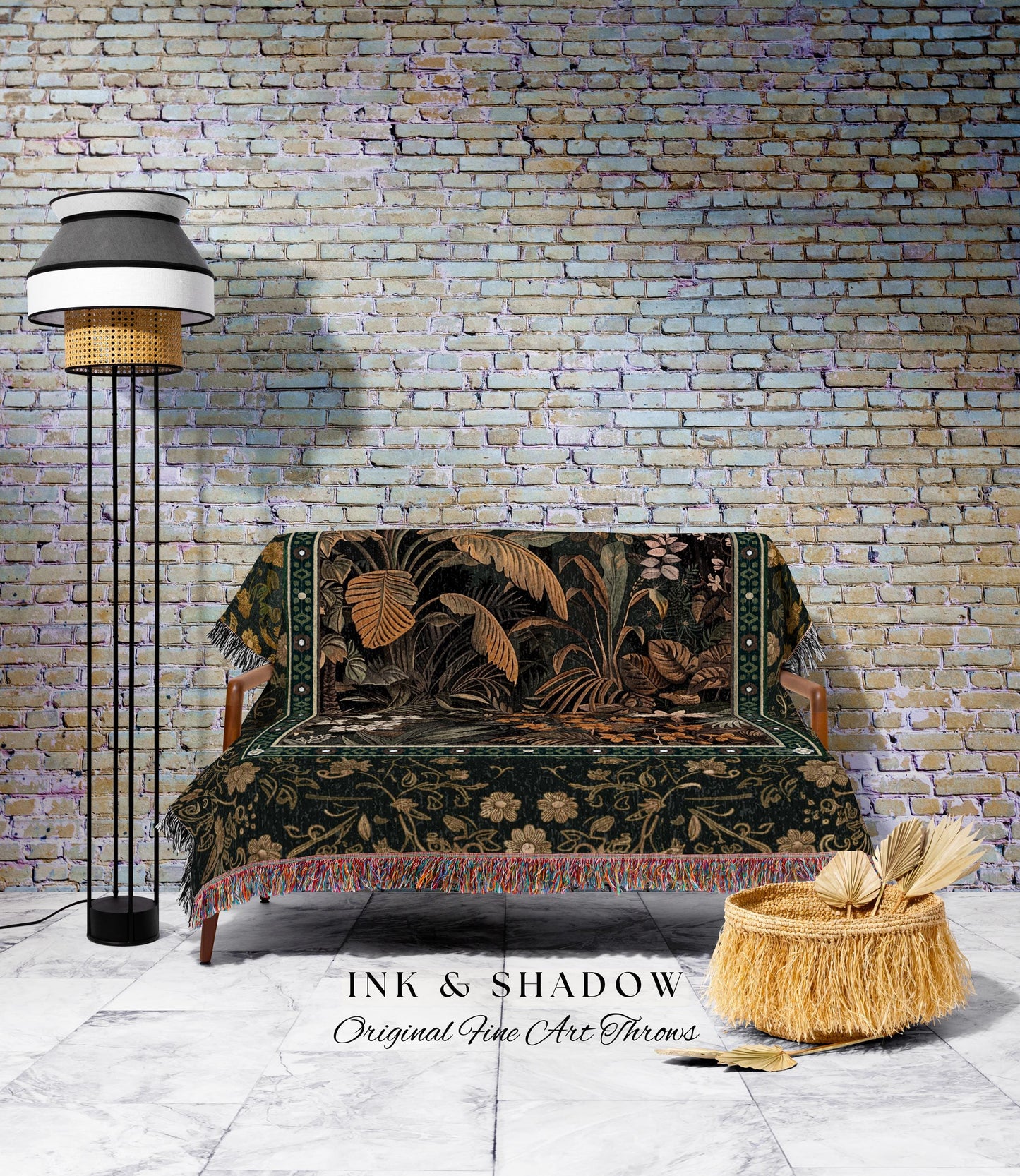 Whimsical Botanical Jungle Tapestry | Forest Aesthetic Woodland Living Room Mystical Home Decor Plant Themed Ethereal Book Nook Blanket |
