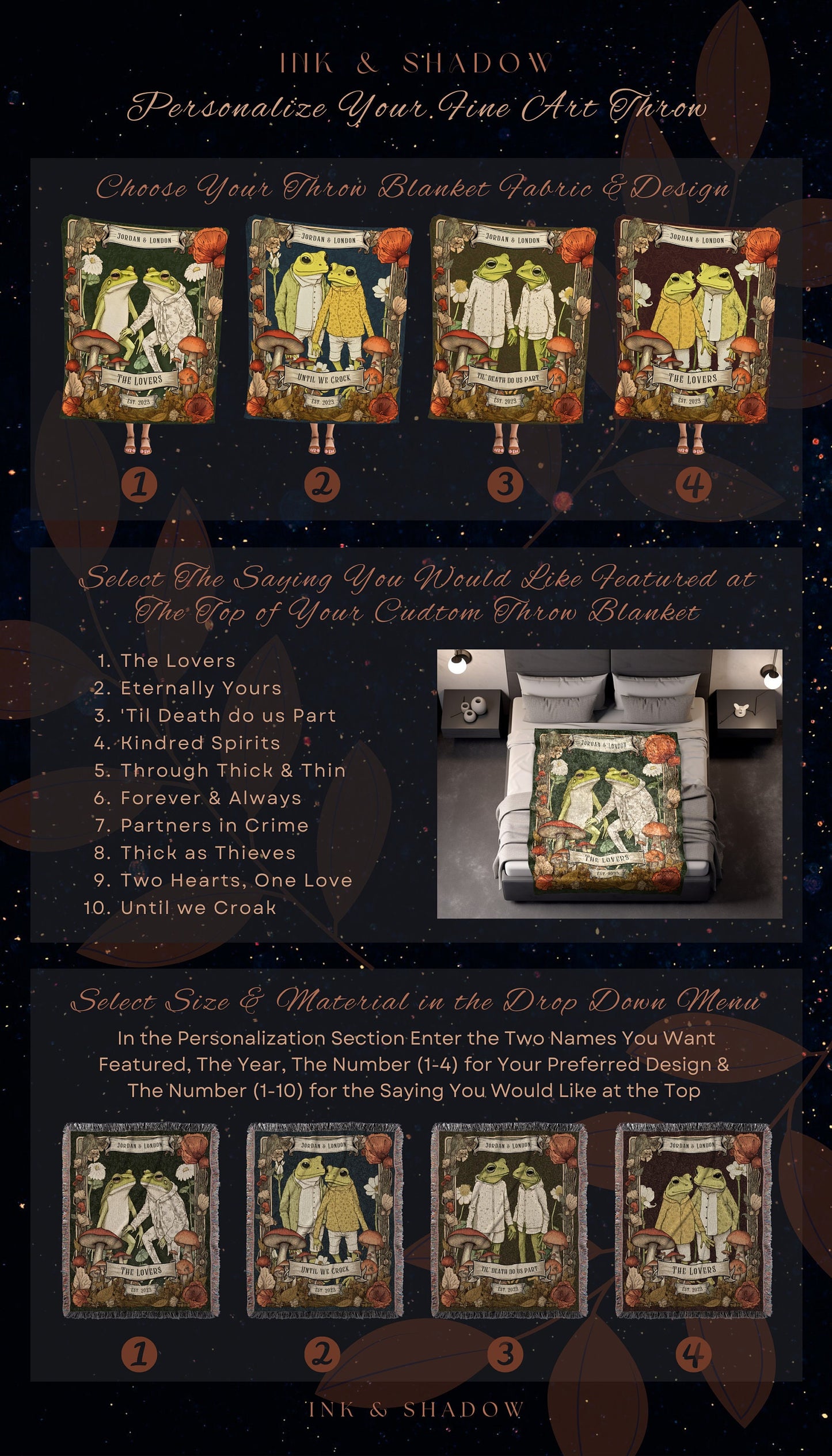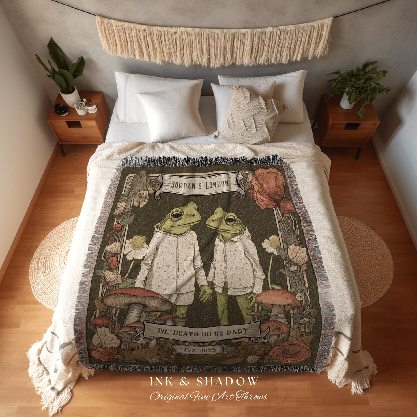 Whimsigoth Frog Couple Blanket | Custom Anniversary Gift Tapestry Woven Throw Vintage Frog & Toad Goblincore Blanket Custom Wedding Gift |