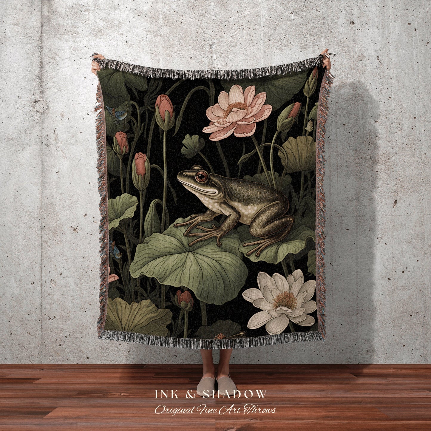 Whimsigoth Frog Tapestry Blanket | Frog & Toad Tapestry Gothic Dark Cottagecore Blanket Woven Throw Vintage Frog Blanket Goblincore Decor |