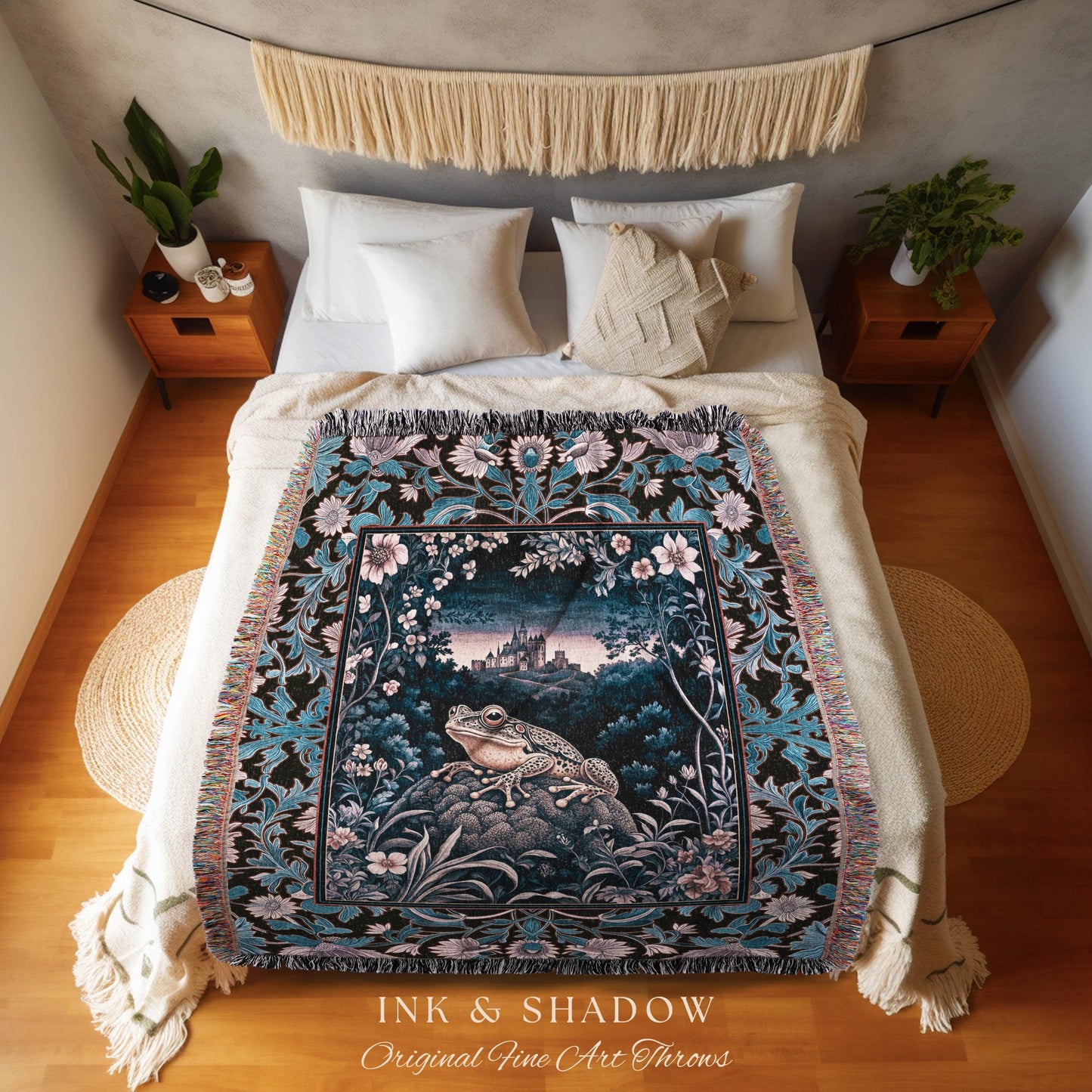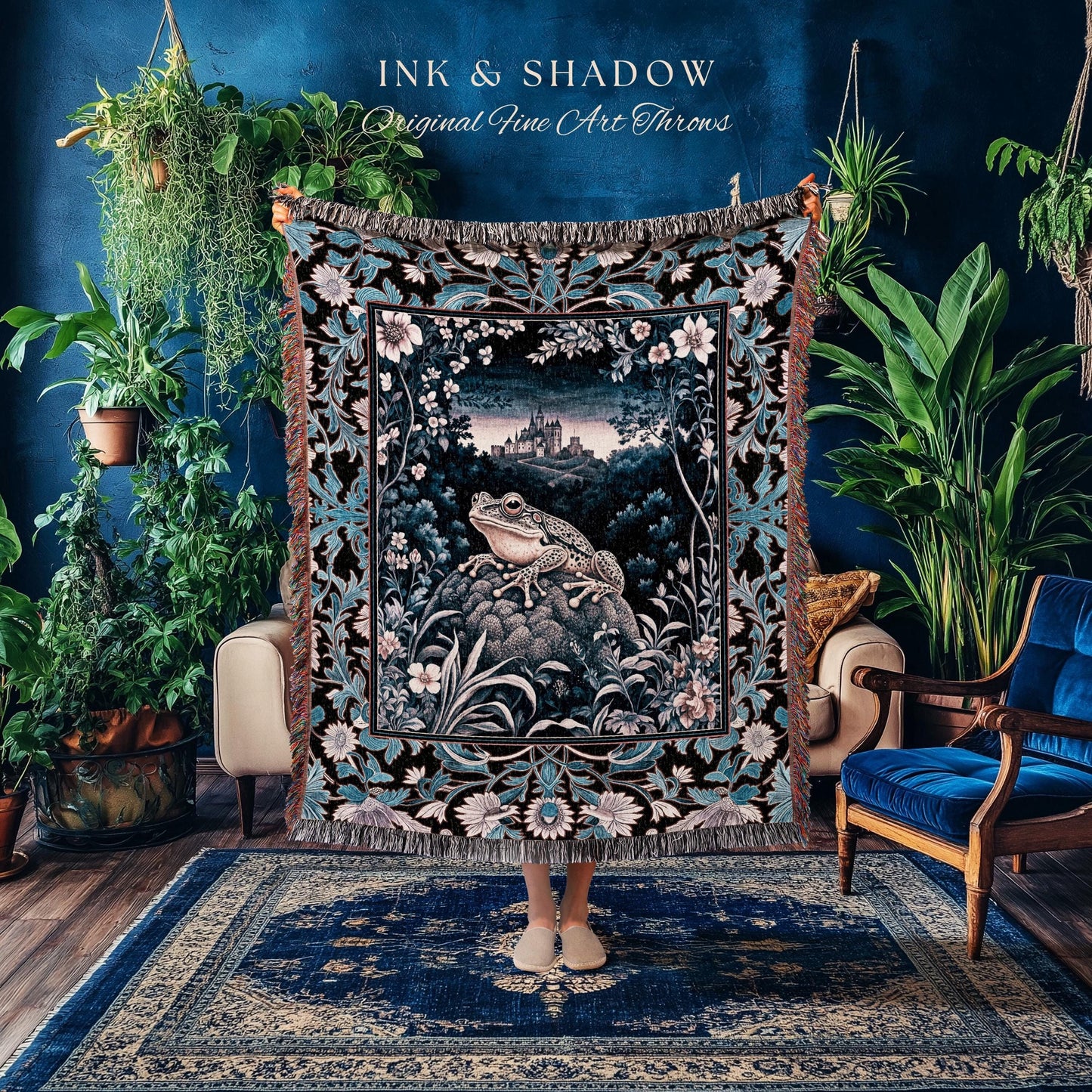 Witchy Toad Tapestry for Moody Bedroom | Dark Victorian Floral Frog Lover Blanket Woven Throw Eclectic Living Room Whimsical Cottagecore |