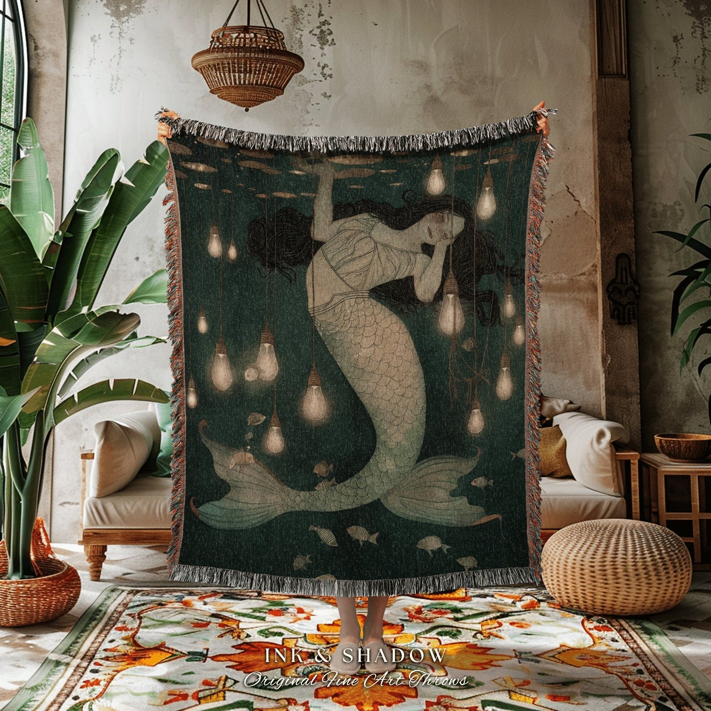 Woven Tapestry Mermaid Room | Dark Academia Bedroom Celestial Throw Ethereal Mermaid Core Royalcare Tapestry Sirencore Decor Celestial Fairy